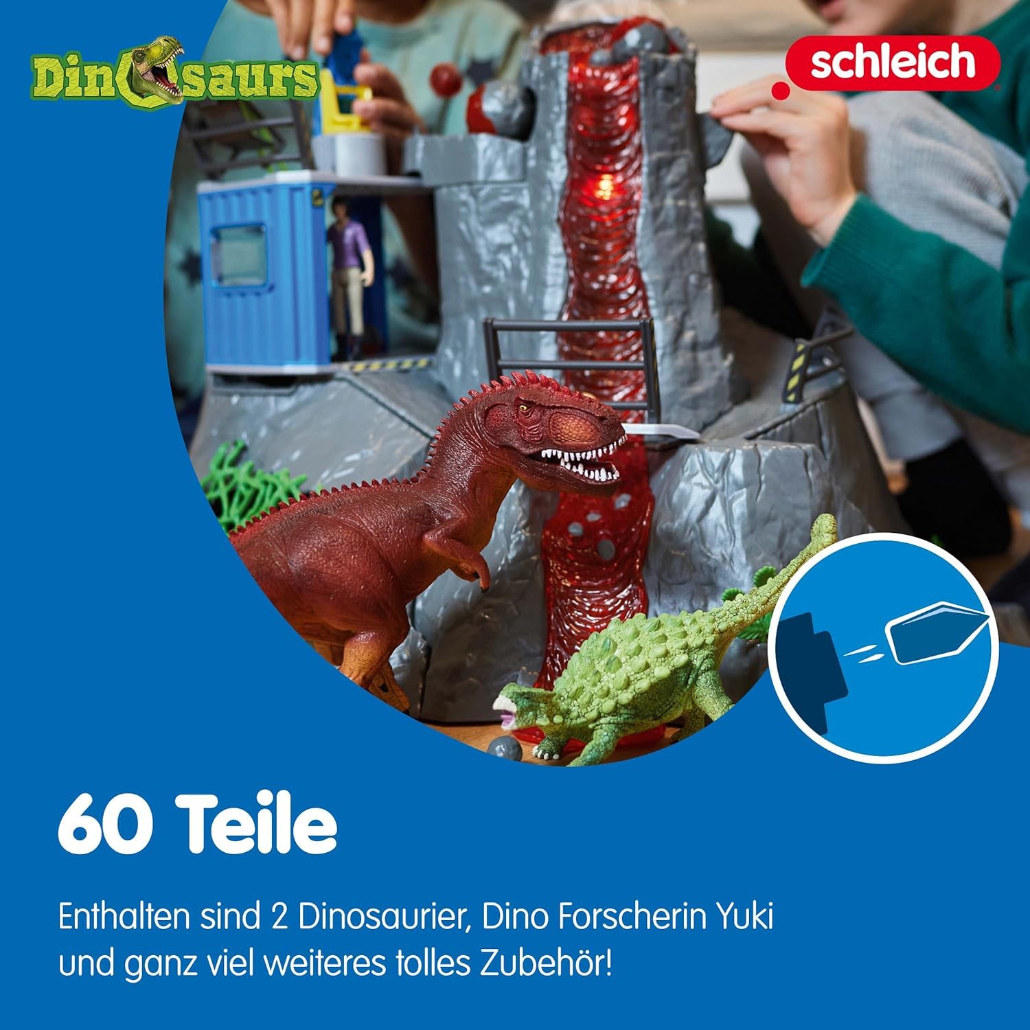 ["Exciting Adventure: Researcher and dino expert Yuki is on a volcano expedition. In her research container with defense weapon, she collects all kinds of information about dinosaurs","Endless Fun: The schleich Dinosaur Set includes the dino researcher Yuki, 2 dinosaurs, and lots of accessories. The dinosaur toy for ages 5 and up is suitable for boys and girls","Erupting Volcano: The schleich volcano can catapult stones from the volcanic crater, vibrate, and smoke. Together with the LED light function, an exciting game atmosphere is created","schleich DINOSAURS: Exciting dino toys for kids who crave prehistoric adventures like exploring the volcano or working in the Big Dino research station (not included)","Discover the Magic of Play: With schleich toys, imaginative stories begin. Our detailed, durable figures & playsets are passed down from generation to generation"]