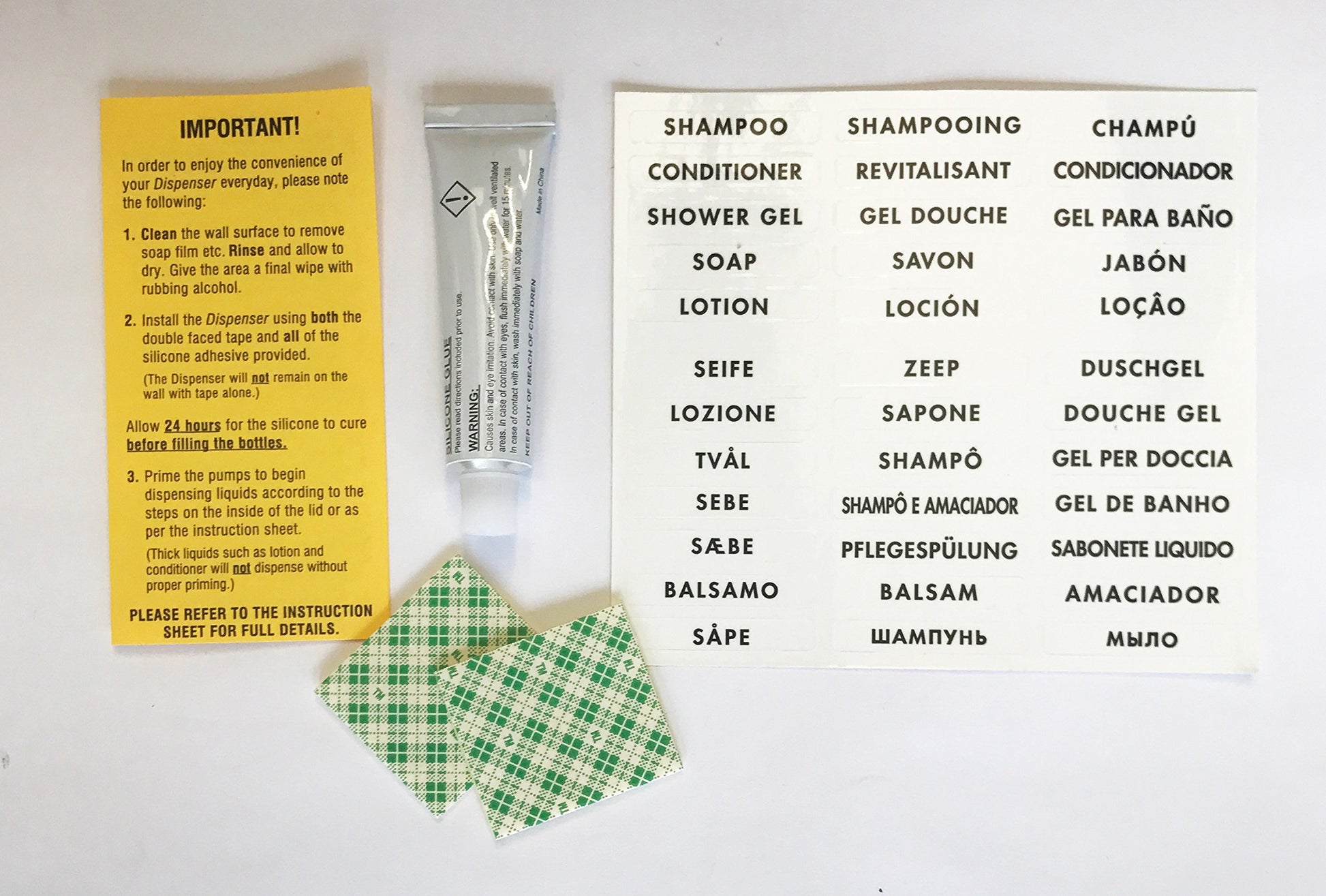["Thorough hand washing is usually sufficient to protect against viruses, according to the Institute for Hygiene and Public Health: Hand washing not only removes dirt, but also viruses. AVIVA SOAP DISPENSERS provide a fresh new look with a modern flair. Easy and one-handed operation, favorite soap can be dispensed with the push of a button. No more mess on the shower shelf.","FEATURES AND BENEFITS: Convenience button: The chamber can be removed from the back for easy filling. The chamber can be locked if desired","DETAILS: Dimensions per soap dispenser: H 7.1 in x W 6.7 in x D 2.8 in Weight: 9.9 oz Capacity: 11.2 fl oz / Chamber","ACCESSORIES: Waterproof self-adhesive stickers with labeling (multilingual): e.g. Shampoo, Conditioner, Body Wash, Lotion can be personally selected and attached.","INSTALLATION: Easy Do-It-Yourself installation: the soap dispenser can be attached in minutes without tools. Attached to any pre-cleaned wall surface with the included adhesive pads and silicone. It holds securely and saves the need to drill holes in the walls. If desired, the soap dispenser can also be screwed in, fixtures are included."]