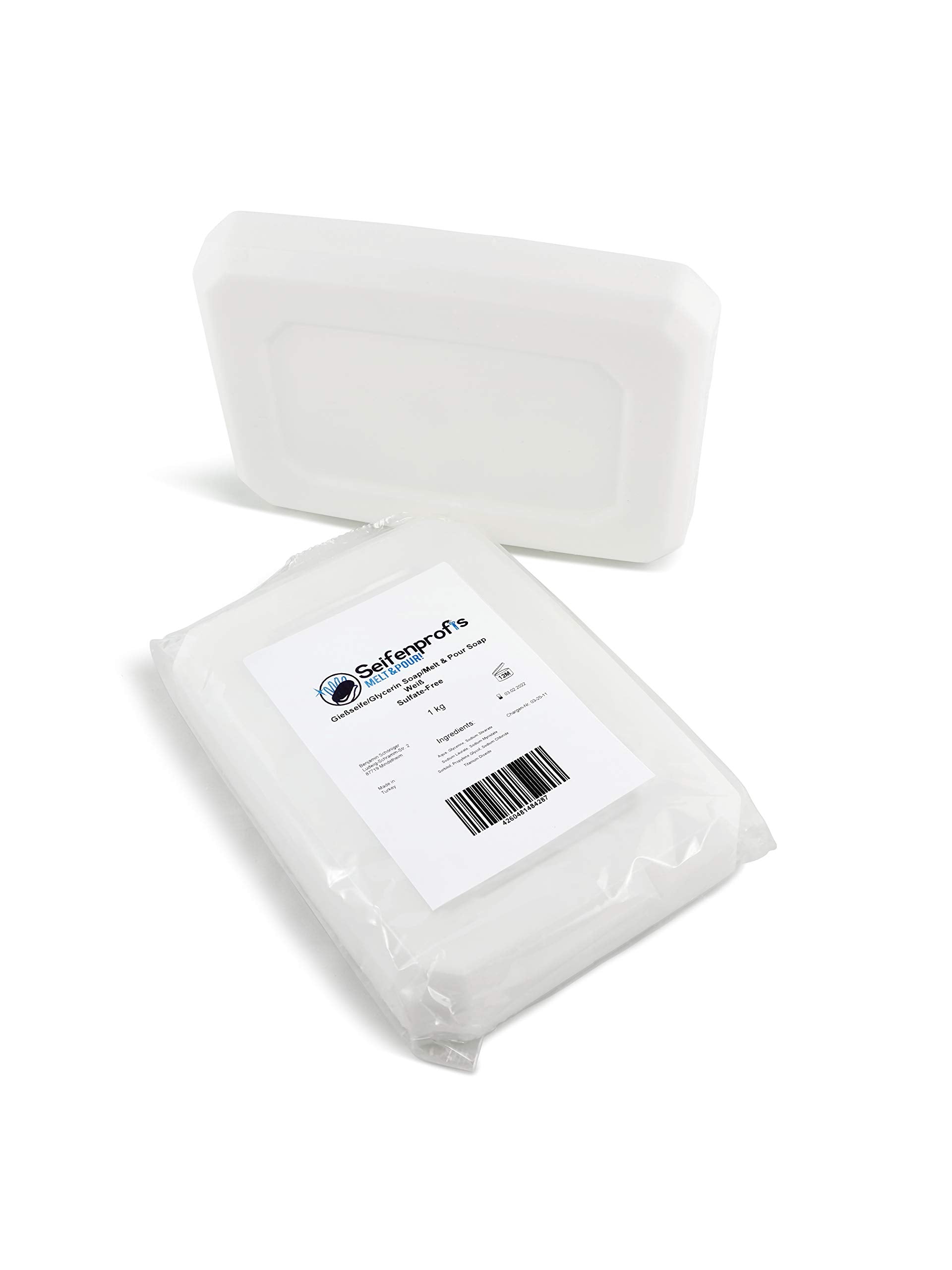 ["High-quality raw soap for soap making and DIY soap casting - Easy to melt, white, almost odorless", "SLES (SLES = Sodium Laureth Sulfate) and SLS free (SLS = Sodium Lauryl Sulfate) - Surfactants are foam formers. Our soaps may not foam as much, but they clean gently and effectively without irritating or harming the environment", "Raw soap/melt-and-pour soap in the microwave, melt in a water bath, and enhance with soap fragrance and color. Suitable for all silicone molds. Pour soap into the mold and let it solidify", "Quantity: 2.2lbs 4.4lbs 6.6lbs blocks - white in a convenient 2.2lbs soap block, top quality - handmade soap-", "Ingredients Transparent: Aqua, Glycerin, Sodium Stearate, Sodium Laurate, Sodium Myristate, Sorbitol, Propylene Glycol, Sodium Chloride