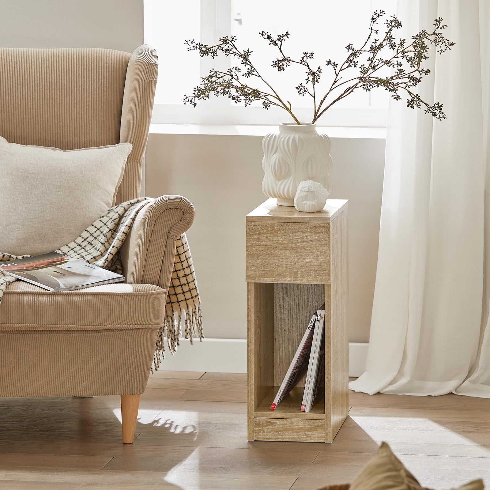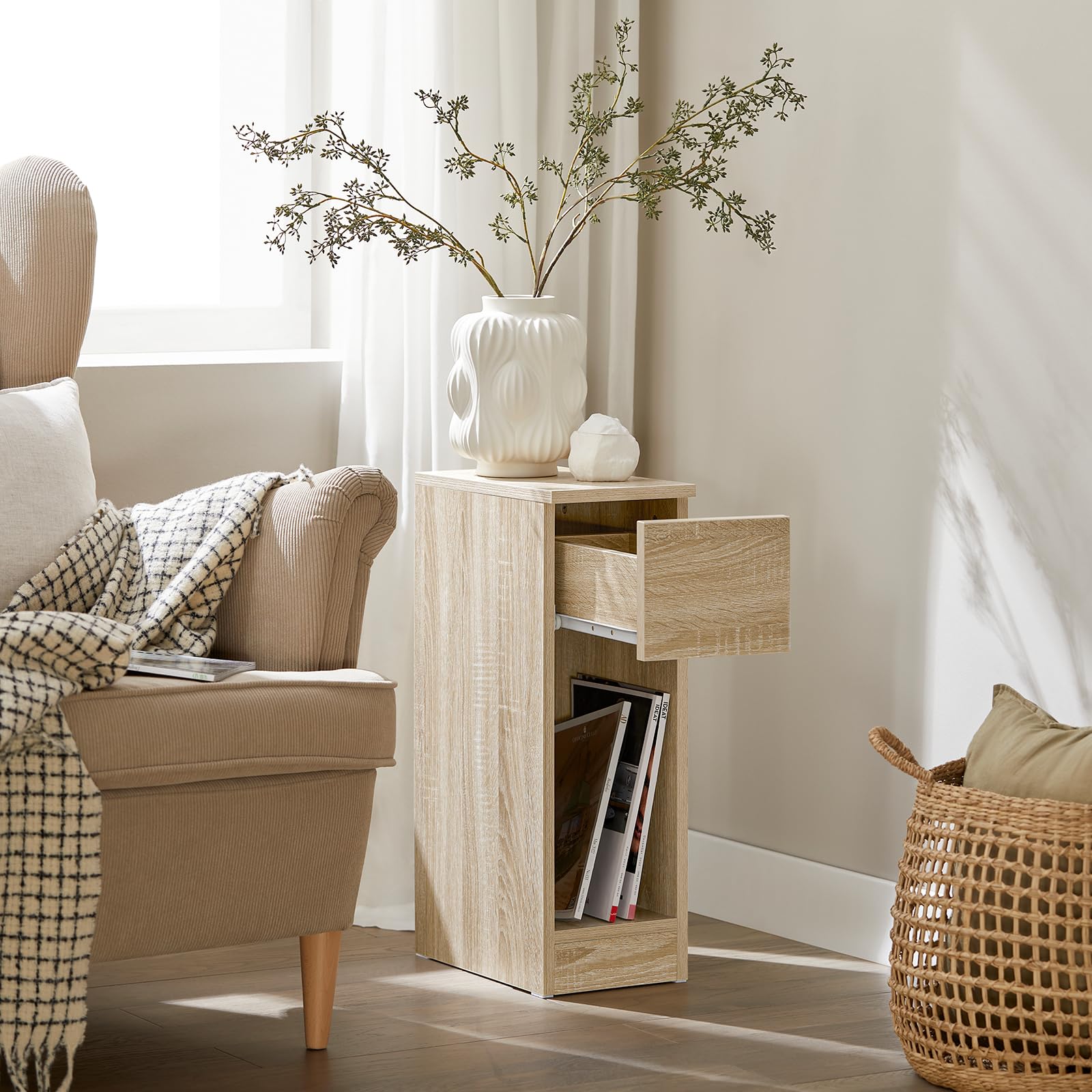 SoBuy 2-piece set of narrow bedside tables with drawer and shelf, nightstand for bedroom living room, natural wood, W20 x D35 x H60 cm FBT111-Nx2