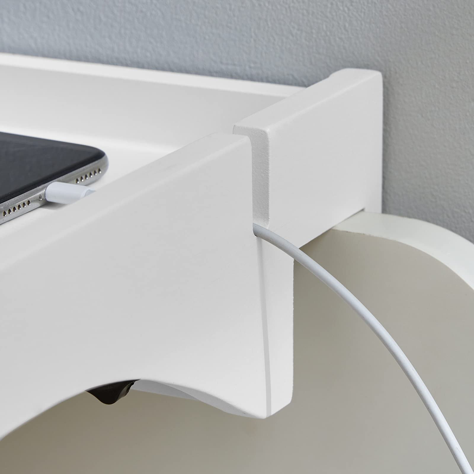 SoBuy clamp shelf for the bed with cable management - Bamboo nightstand for books, smartphones & glasses, 36x25x9cm White NKD01-W