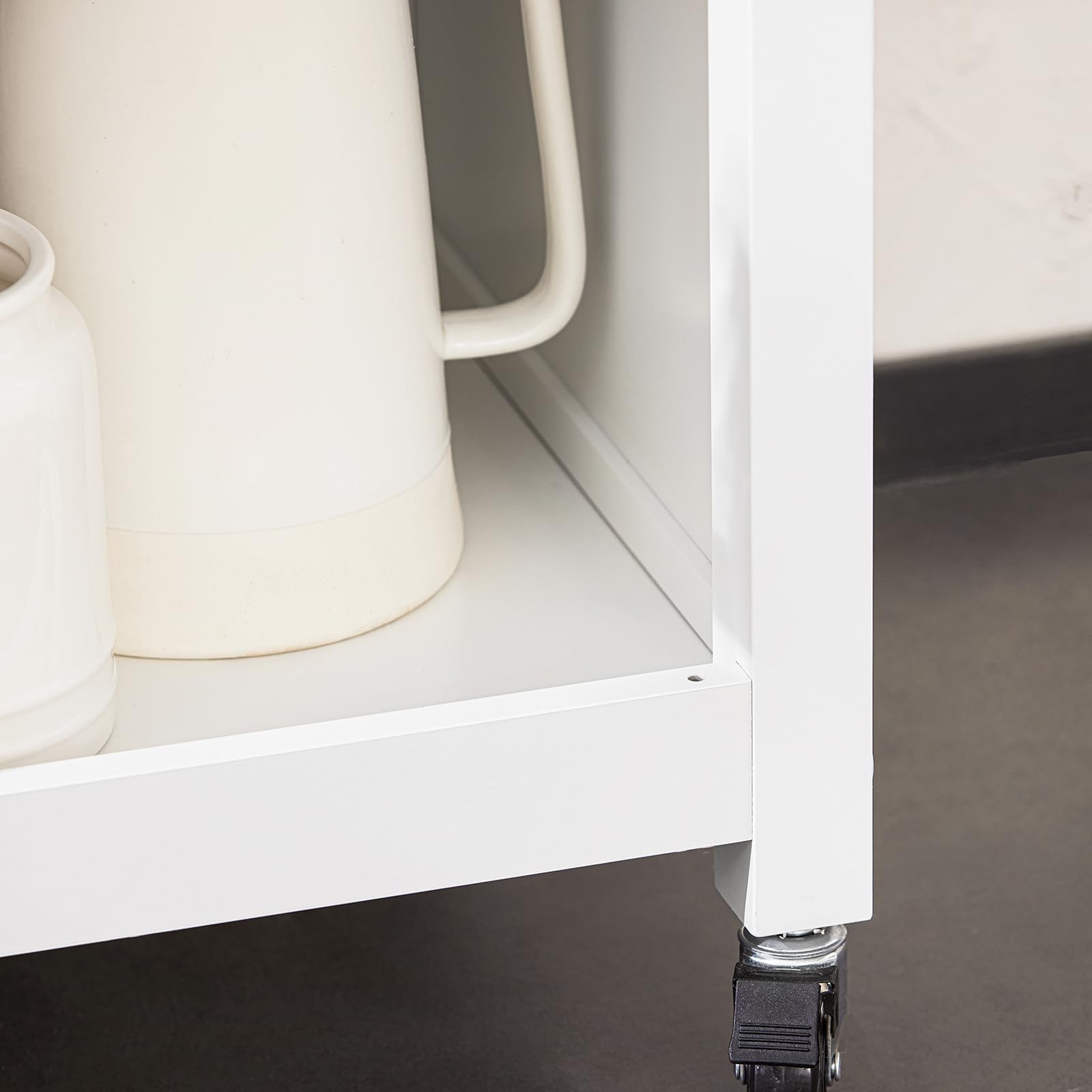 The kitchen trolley has four stable wheels (2 of them lockable), making it easy to move the kitchen trolley on any surface