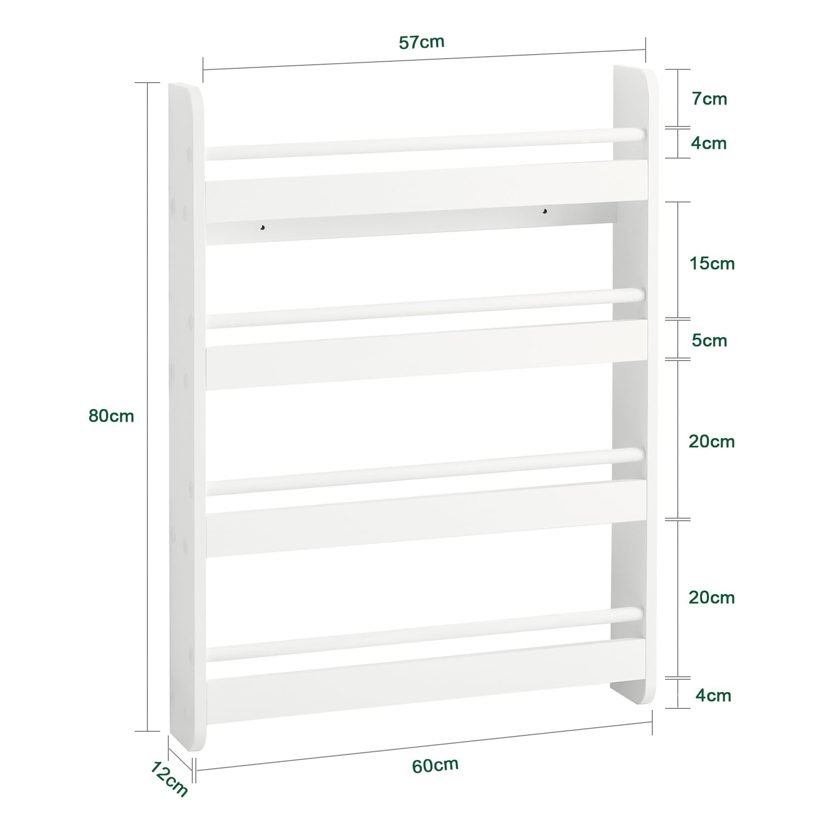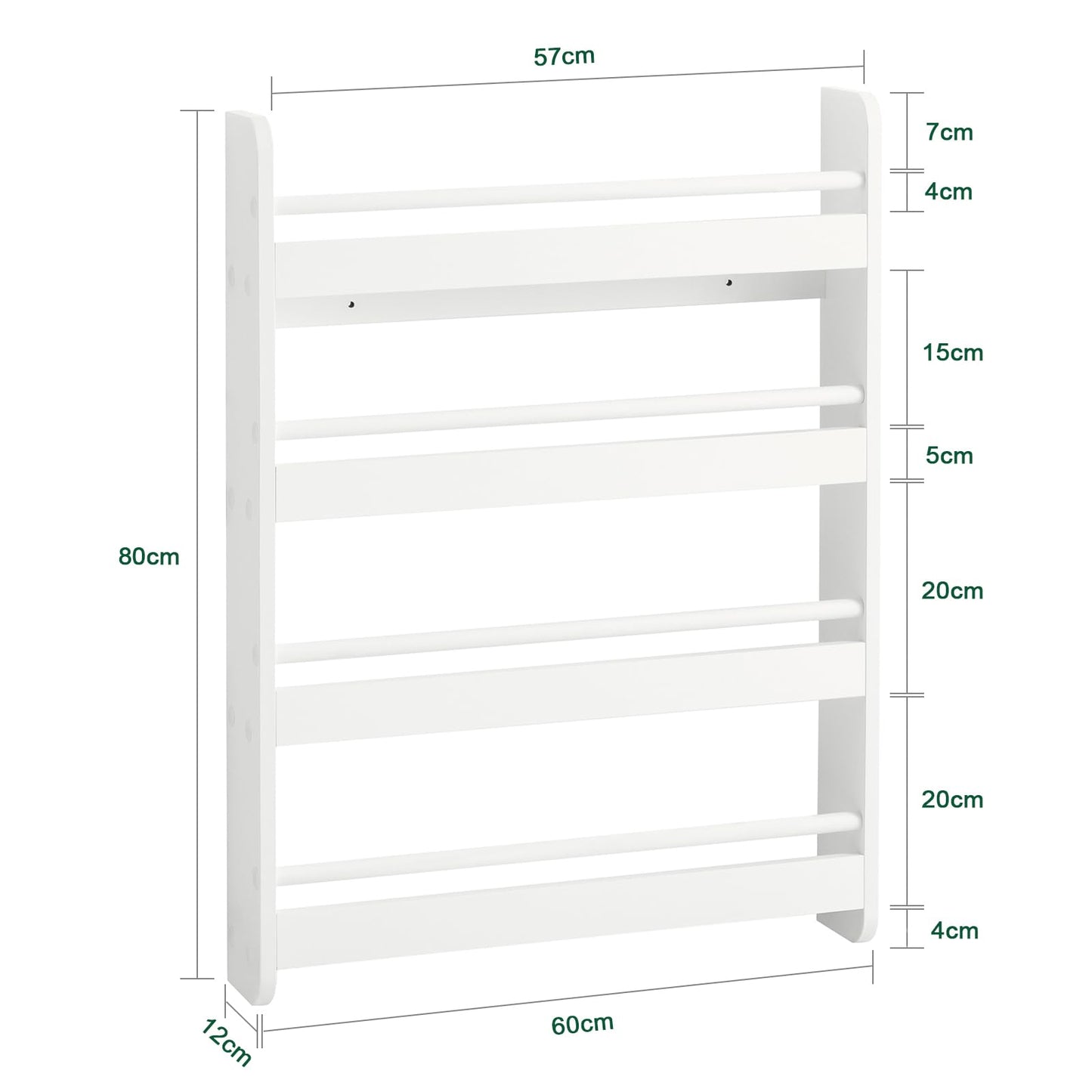 SoBuy KMB08-K-W Kids bookshelf wall shelf storage shelf with 4 shelves for books and decor white dimensions: 60x80x12cm