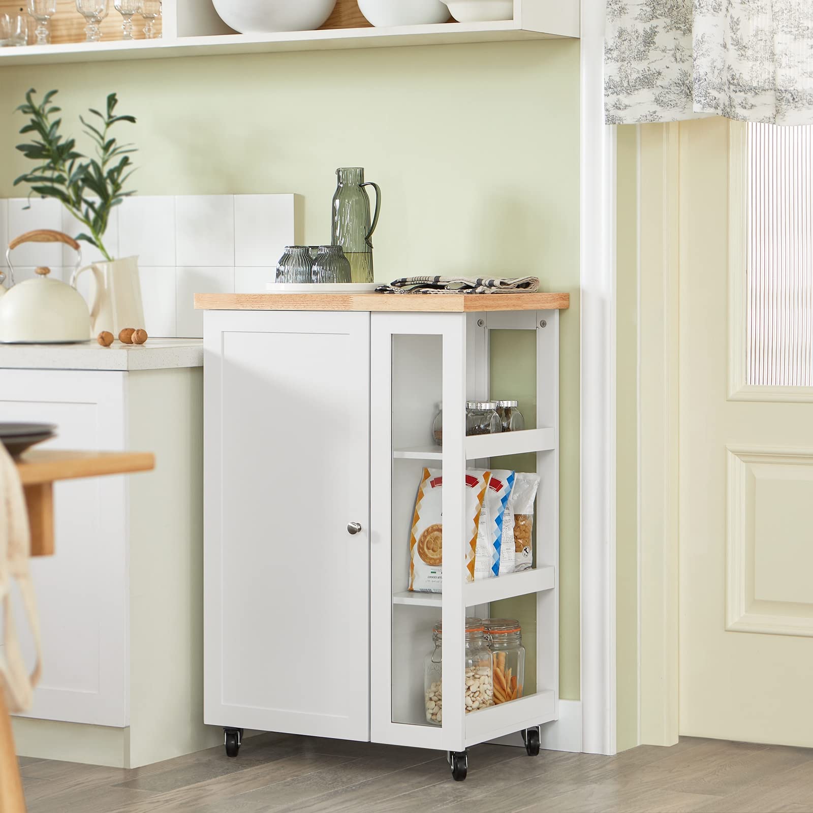 SoBuy rolling kitchen cart serving cart side table with 3 shelves kitchen cart for kitchen, living room, dining room white-natural BHT approx. 60x90x40cm FKW75-WN