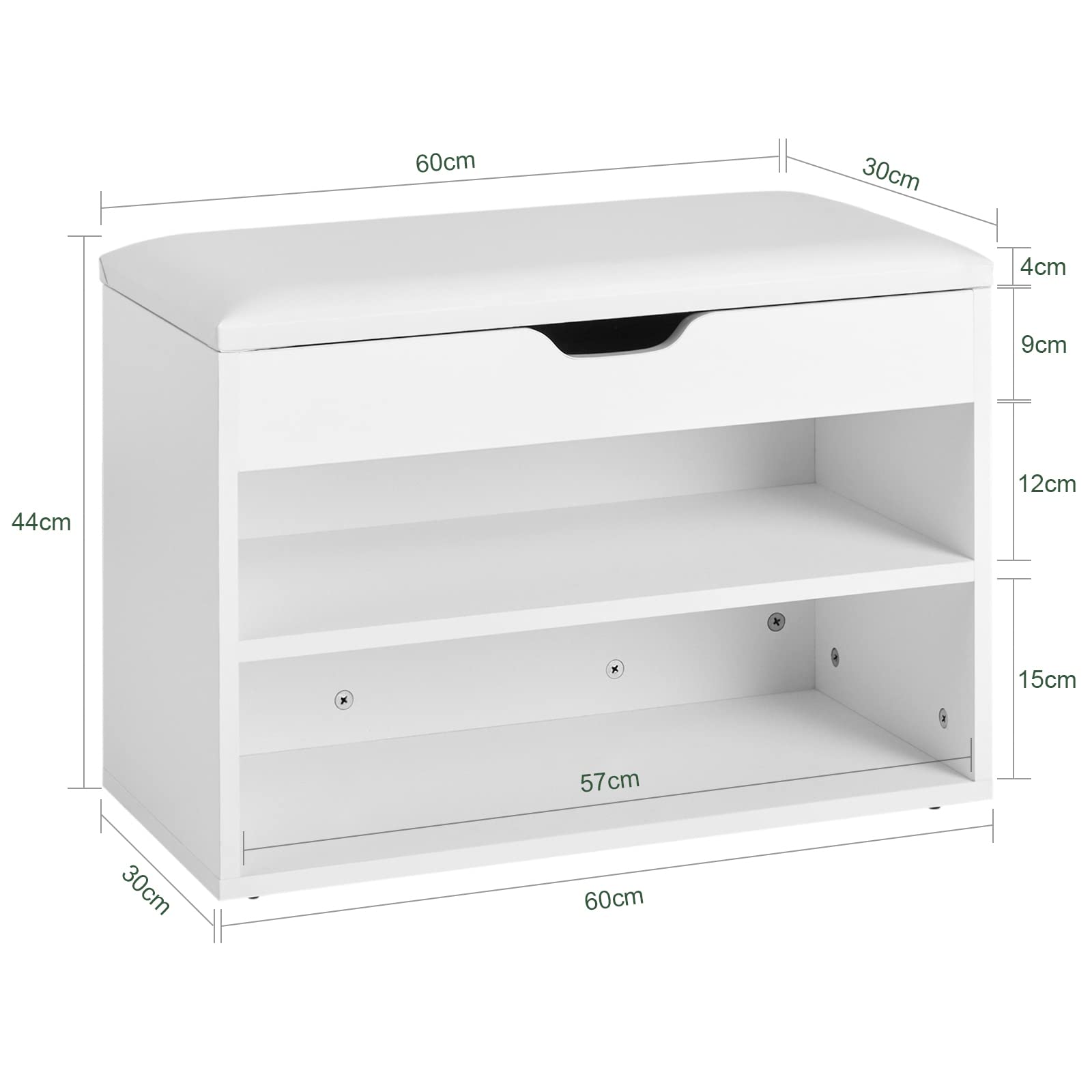 SoBuy Shoe Bench Shoe Rack with Seat and Storage Space, sturdy shoe box for hallway living room, space-saving, up to 120 kg load capacity, white 60x30x44 cm FSR25-W