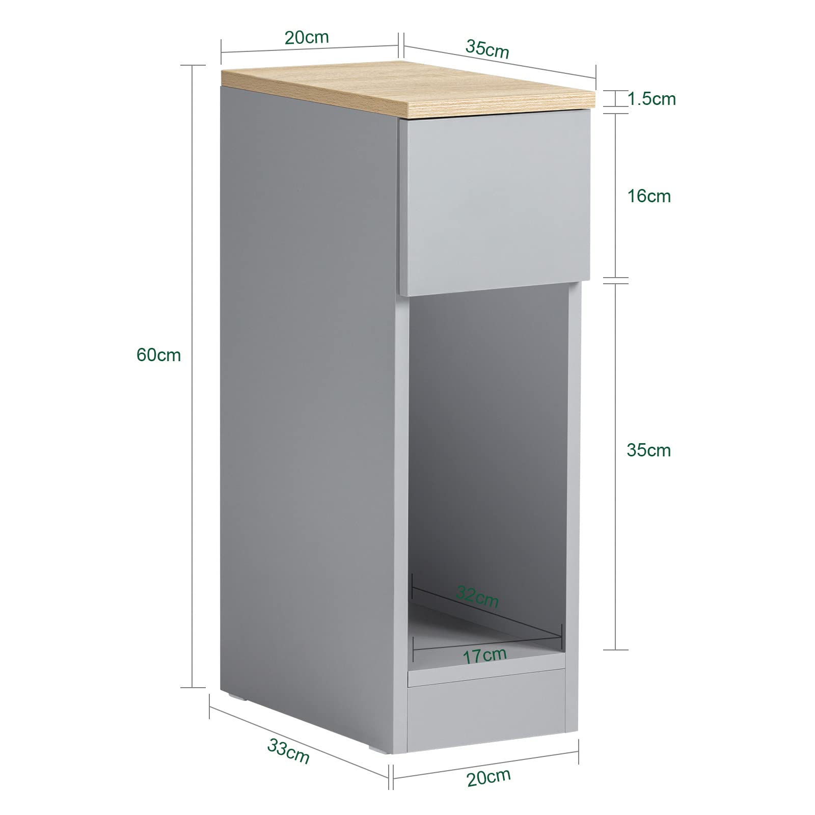SoBuy slim bedside table with drawer and shelf nightstand for bedroom living room light grey B20 x D35 x H60 cm FBT111-HG