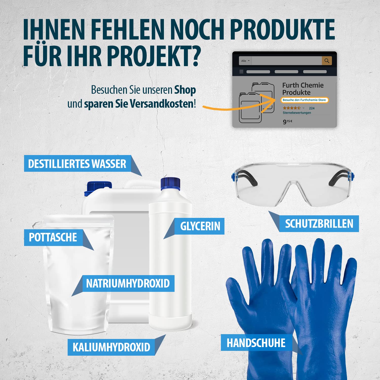 ["Designations: Sodium hydroxide, caustic soda, NaOH, caustic soda, soap soda, CAS No. 1310-73-2, content of total mass of caustic soda > 99.6 %","Macro beads vs. micro beads: The offered macro beads are significantly larger in grain size than the micro beads also offered. The larger beads effectively prevent clumping (sodium hydroxide is a hygroscopic solid that absorbs moisture)","Uses: e.g. for soap production, as drain cleaner (in combination with aluminum shavings), paint stripper, in solution with water also for easy removal of oils and fats","Sodium hydroxide solution: the beads dissolve excellently in water (working tip: first add the water, then add the sodium hydroxide, depending on the concentration of sodium hydroxide, there may be a strong heat development during the dissolving process)","Packaging: 5 kg in a sturdy hobbock, the container is tightly sealed and reusable"]
