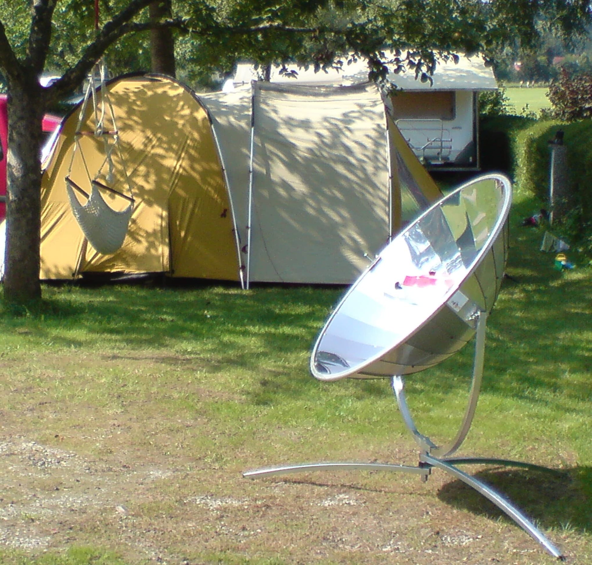 "To cook, bake, roast, grill, and fry in an energy-efficient and self-sufficient way - everything is possible! Reflector diameter 110 cm. Made in Germany! Energy savings of up to 120 USD per year! This way, the solar cooker pays for itself in less than 6 years. Net power: 500 watts in the food (gross power 1050 watts). For example, boiling one liter of water in 12 minutes! Baking time is similar to a conventional oven. Ideal for garden, balcony, terrace, or campsite - Made in Germany! Weather-resistant reflector material with a lifespan of over 25 years. Only available at Sun and Ice! The focal point is inside the reflector unlike other solar cookers and is not highly concentrated (no sunglasses needed). This makes it safe to use and only needs to be readjusted to the sun every 25 minutes."