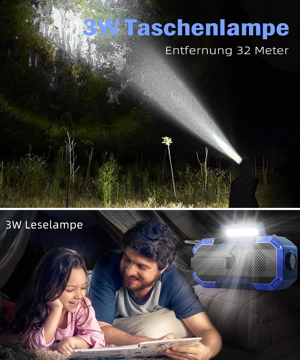 ["Solar battery operated, Crank Radio Mobile Charging Function"] 3 charging options, USB/Hand crank/Solar charge, your phone will never be turned off, keep safe when you are alone/outdoors/traveling/especially in emergency situations.