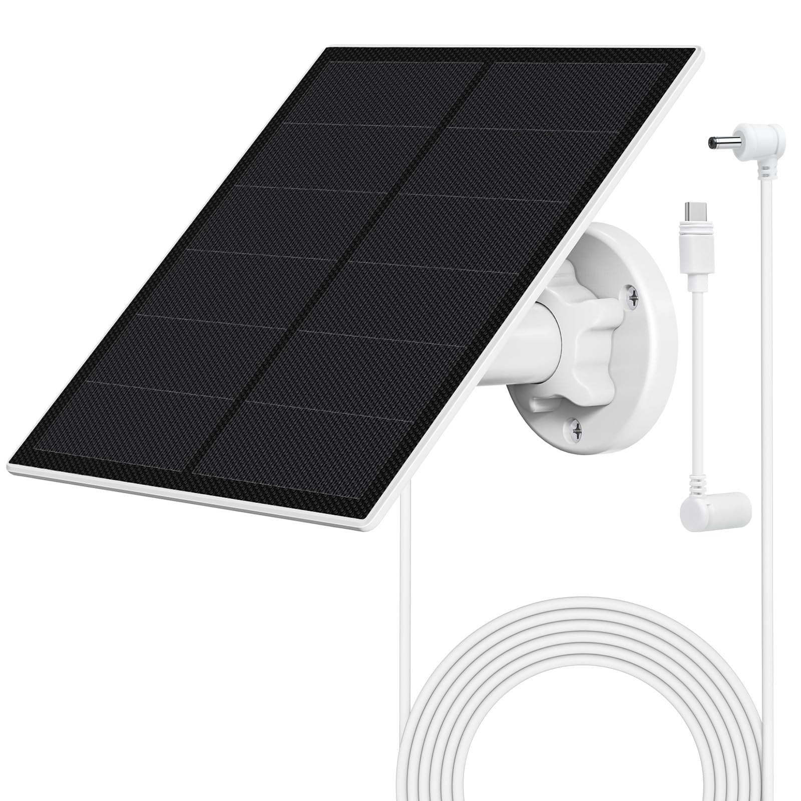 "9.84 ft charging cable & 360° adjustable bracket: The solar charger for Ring camera includes a 9.84 ft charging cable and a 360° adjustable bracket, allowing you to install the solar panel in a location with sufficient sunlight."]