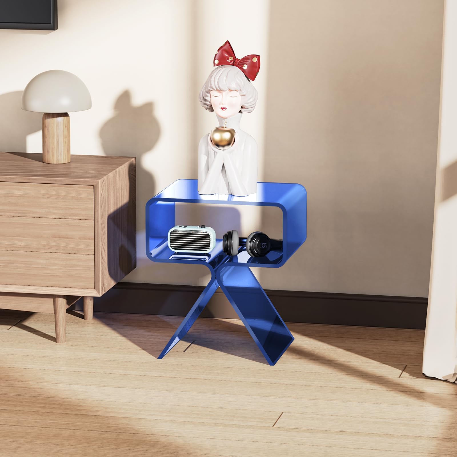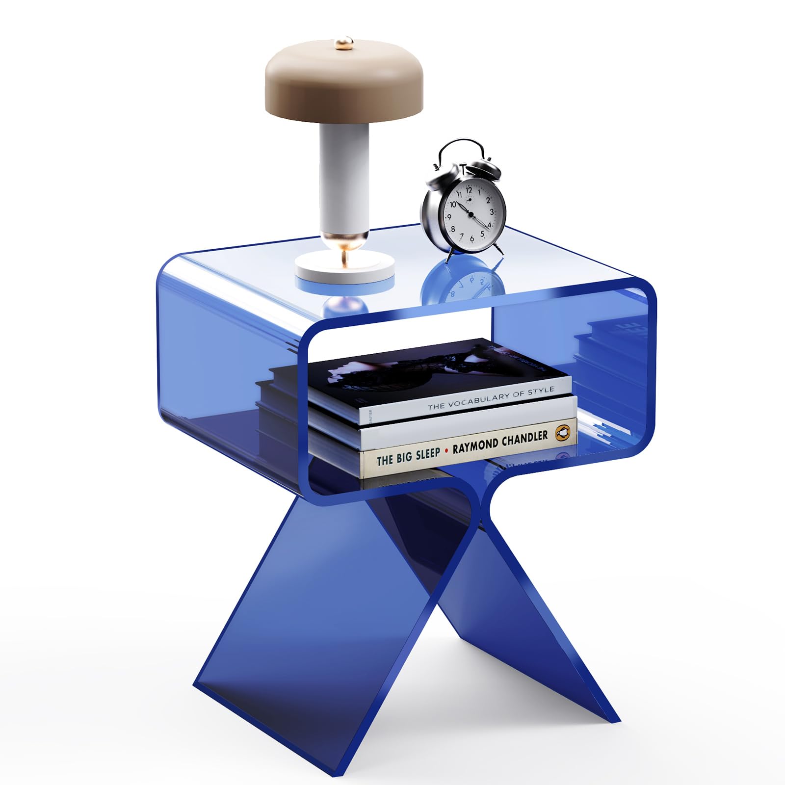 solaround Acrylic Nightstand Side Table, Modern Design Clear Home Decor Display End Table (Dark Blue)