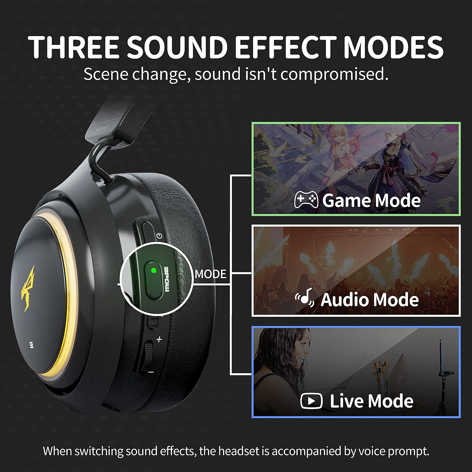 Somic Wireless Gaming Headset, Bluetooth headset for smartphone, retractable microphone, 7.1 surround sound, 50mm drivers, RGB lighting, cute cat ear headphones for girls, Black