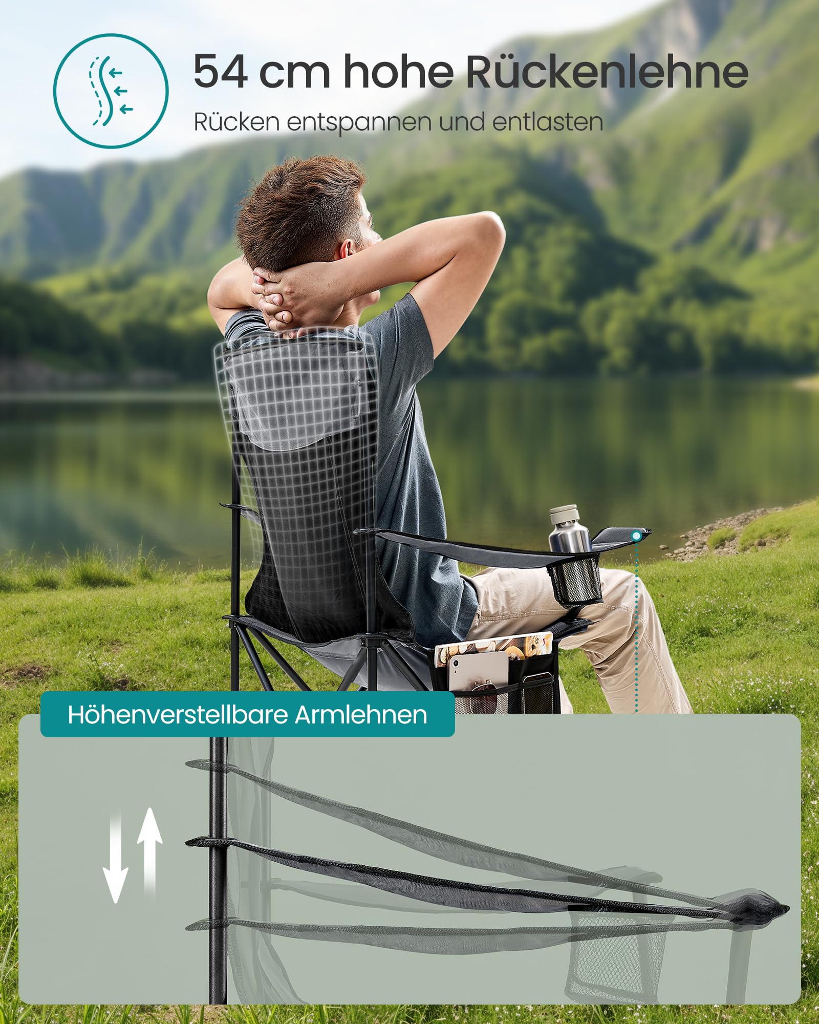 SONGMICS 2-pack camping chair, foldable outdoor chair, fishing chair, high backrest, adjustable armrests, drink holder, up to 150 kg load capacity, camping garden, slate grey GCB028G01