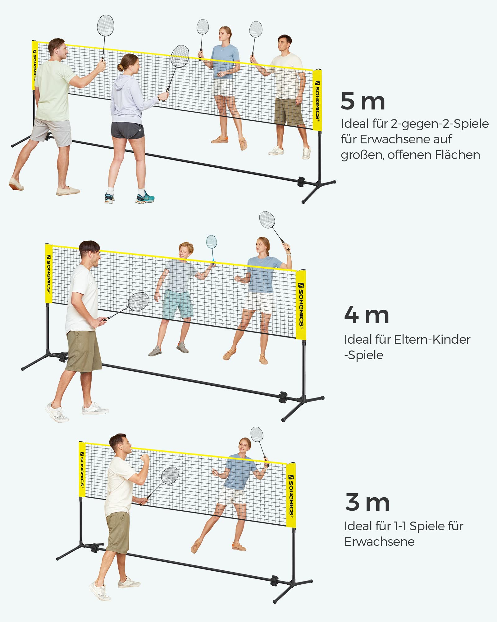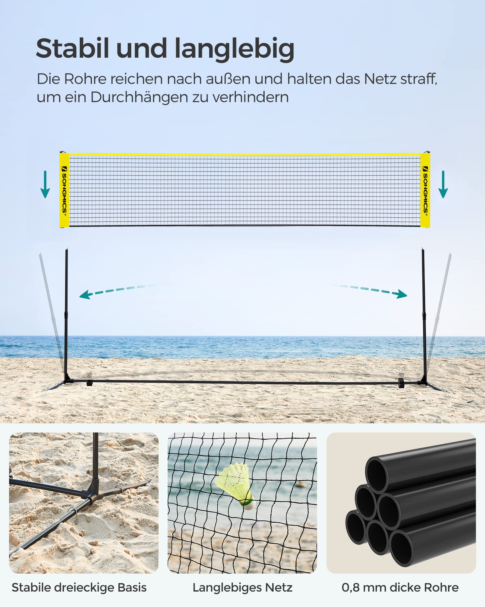 SONGMICS 3m Badminton Net, Volleyball Net, adjustable poles, portable set for tennis, beach volleyball, for garden, park, outdoor, Yellow SYQ300Y