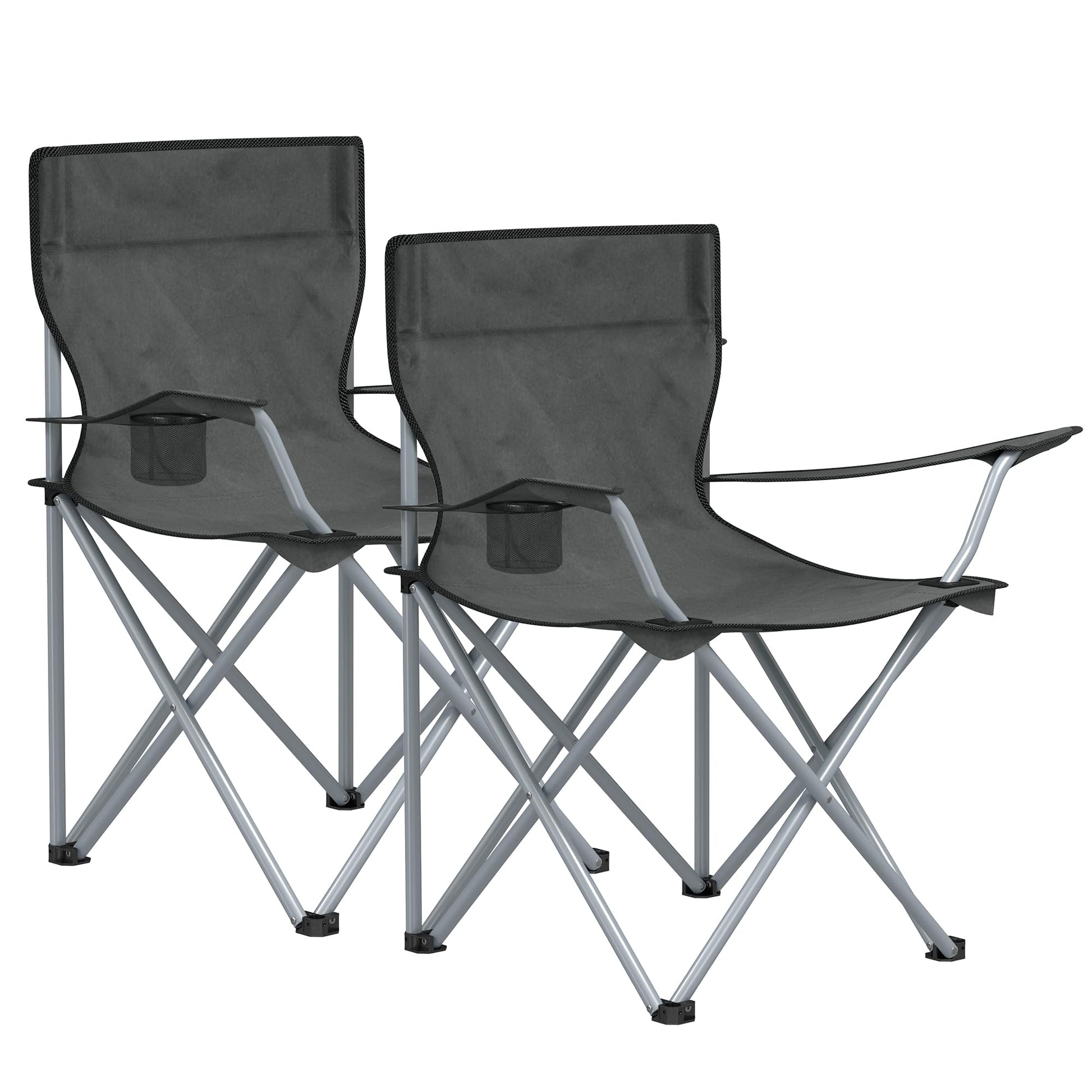 SONGMICS Camping Chair, Set of 2, Folding Chair for Outdoor, Fishing Chair with Armrests, Cup Holder, Portable, Foldable, Holds up to 120 kg, Camping, Garden, Beach, Patio, Slate Gray GCB001G11