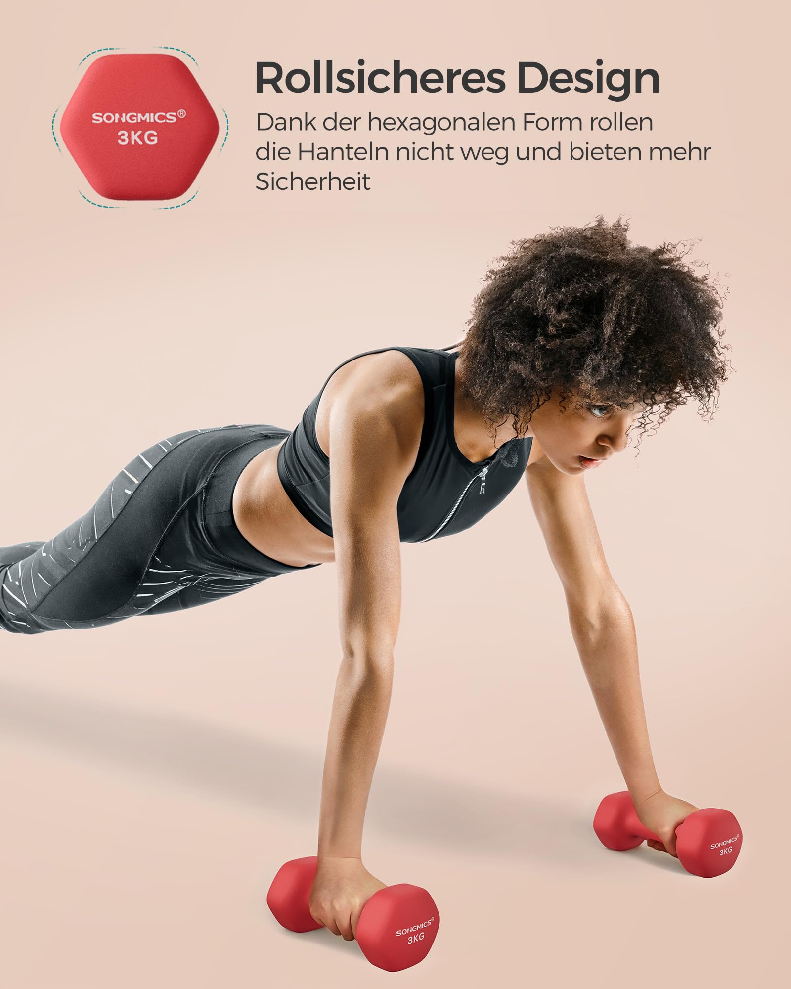 SONGMICS dumbbell set, 2 x 3 kg, with matte neoprene coating, non-slip, strength training, at home, red SYL66RD