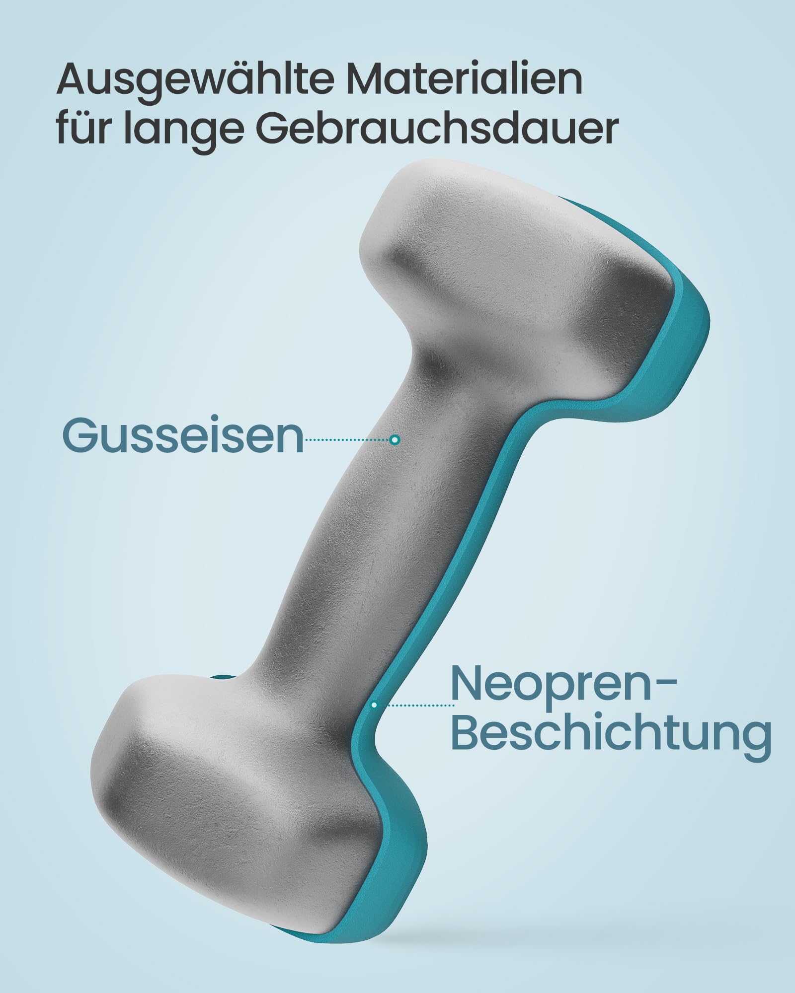 SONGMICS Dumbbell Set, Hexagon, with Dumbbell Rack, 2 x 1 kg, 2 x 2 kg, 2 x 3 kg, matte finish, Neoprene coating, strength training, at home, lime green, aquamarine, and dark gray SYL612G02