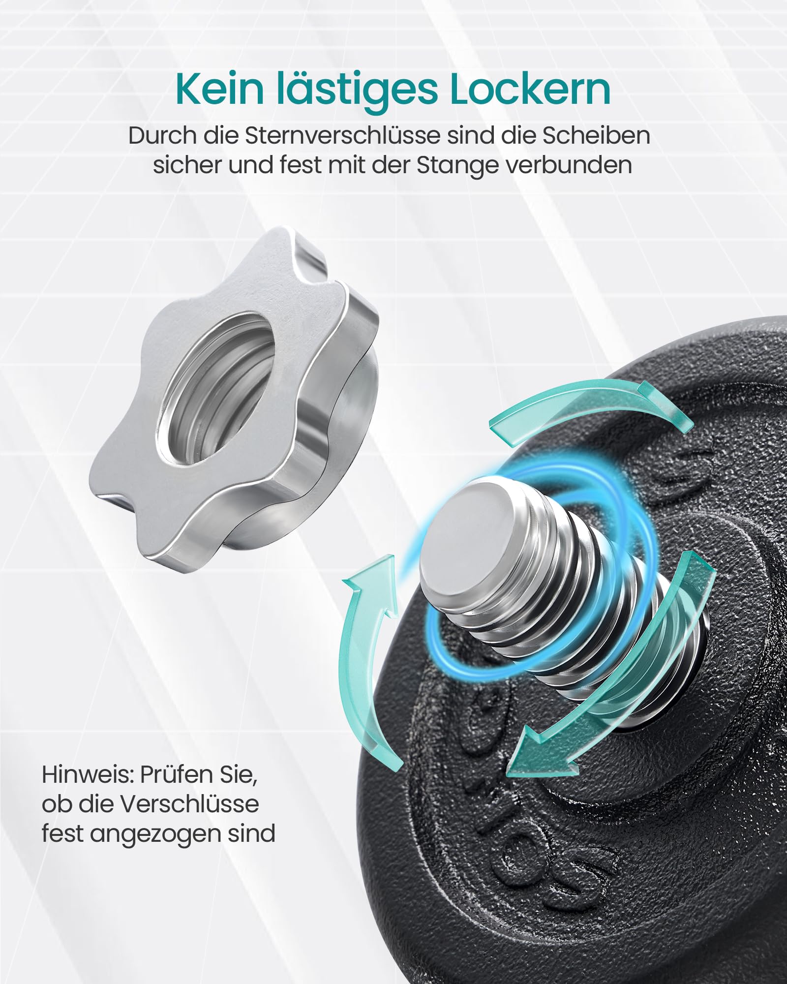 "【NO SLIPPING & CLANKING】The sturdy bars with 14 cm non-slip knurling on the surface ensure a secure and comfortable grip; the 4 star locks allow for a tight connection of the weight plates and prevent annoying clanking",