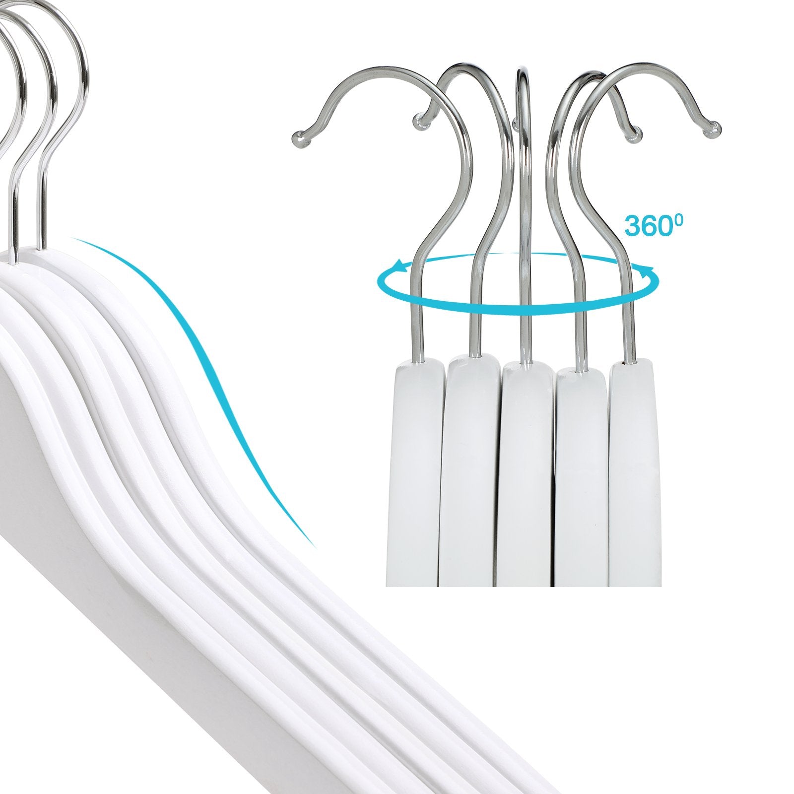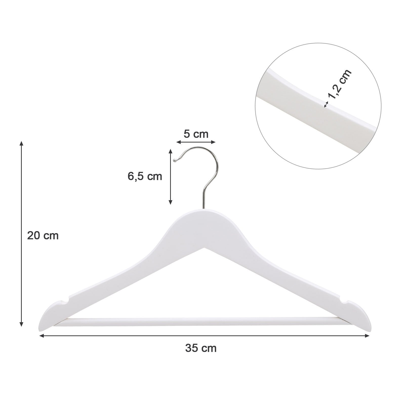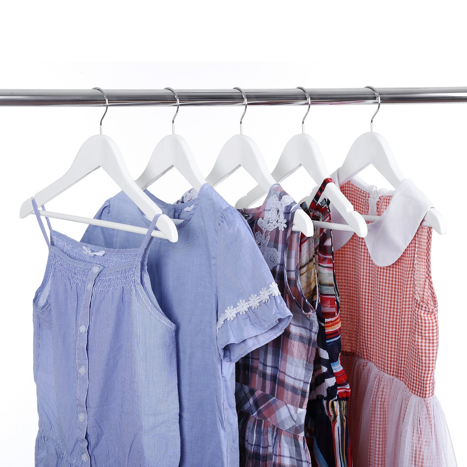 SONGMICS kids' wooden hangers, 10 pack with hanging bar, notches, 360° swivel hook, 35 cm long, White CRW006W02