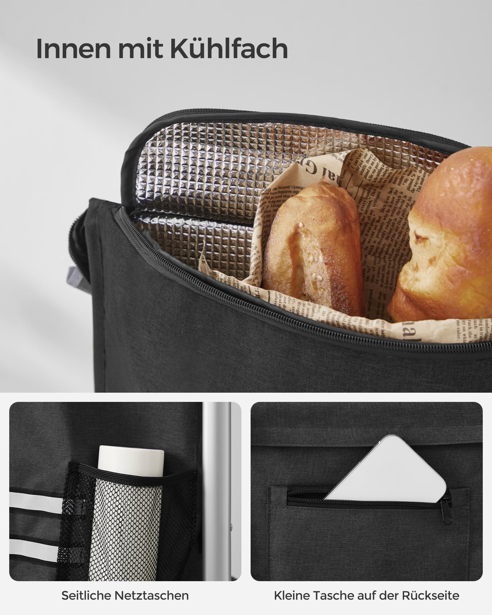 SONGMICS shopping trolley, cart, shopping cart with cooler compartment, large, 35 liters, foldable, shopping bag with wheels, detachable bag, black KST03BK