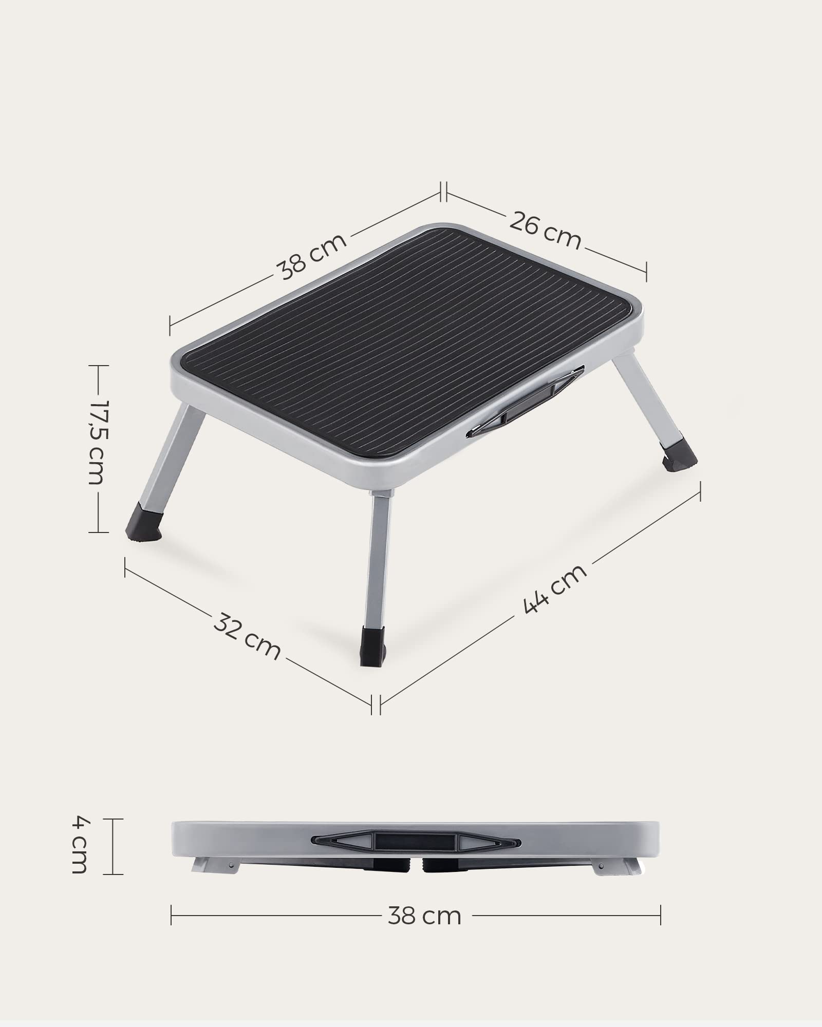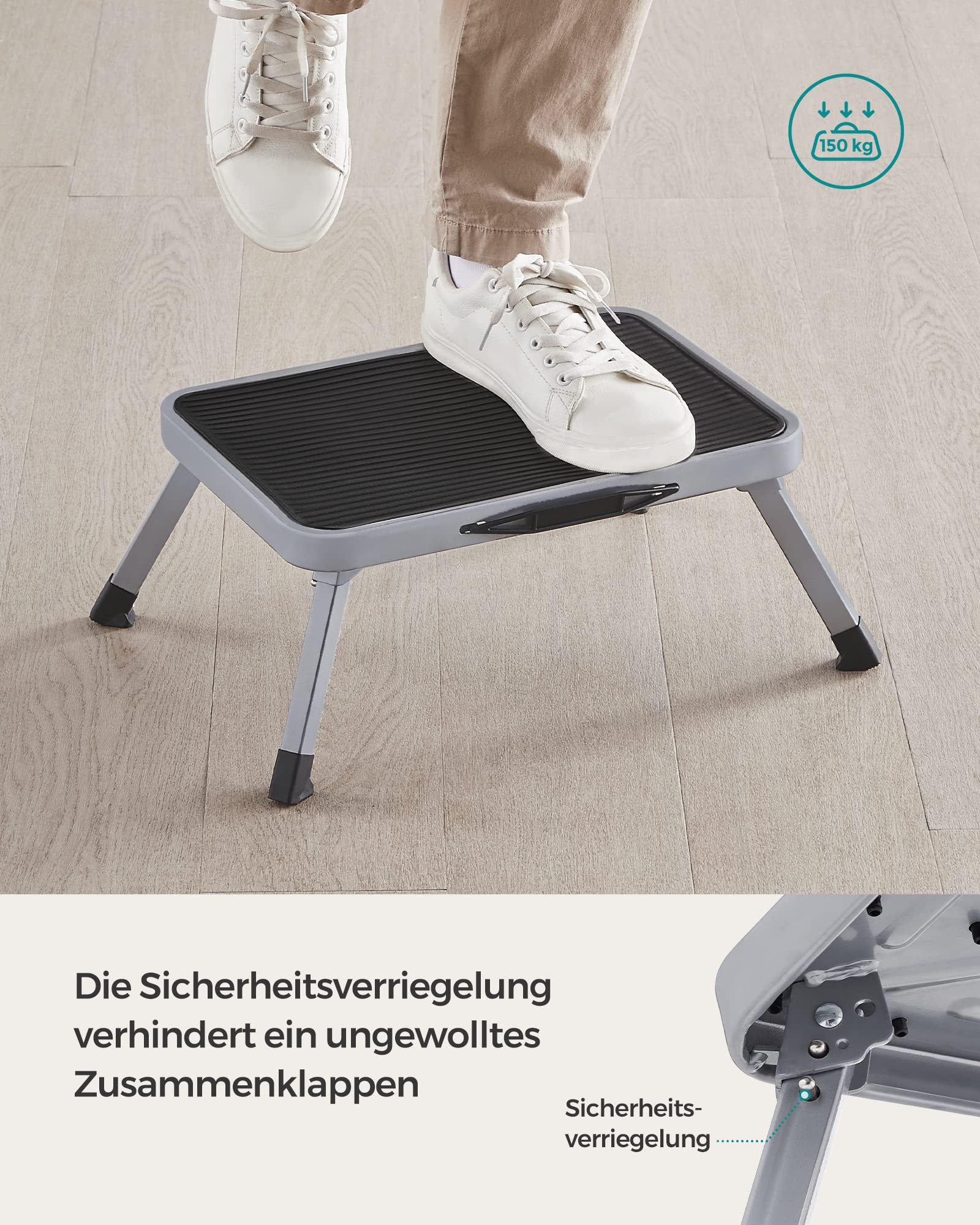 SONGMICS Step Stool, Folding Step Ladder, One-Step Steel Ladder, Non-Slip Step Surface, Holds up to 150 kg, Size unfolded 32 x 44 x 17.5 cm, gray GSL001G01