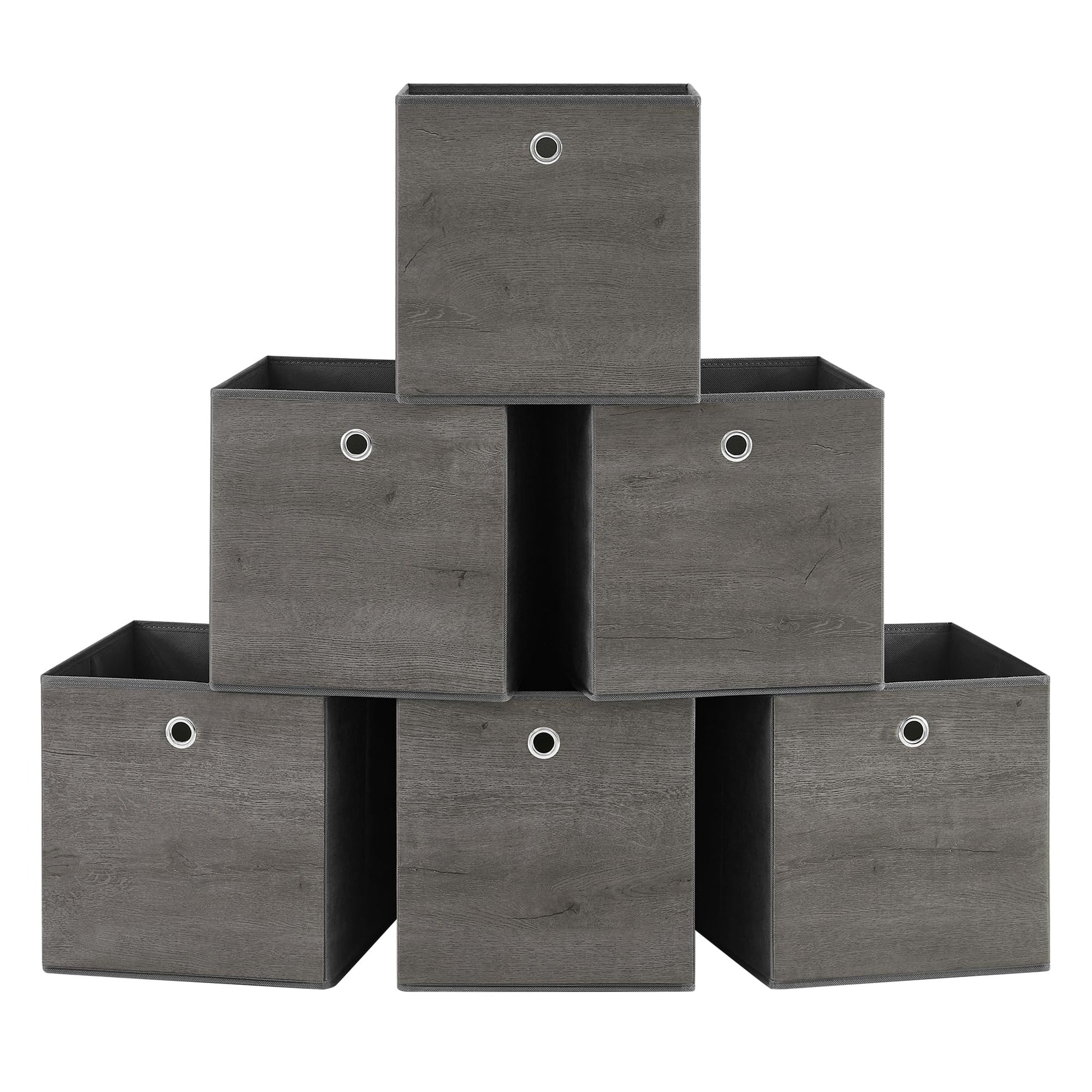 ["Robust and durable] These storage boxes are made of high-quality Oxford fabric, 80 gsm non-woven fabric, and 2 mm thick cardboard. Each box can hold up to 11 lbs, ensuring long-lasting stability for your items","[Stylish design] These organizing boxes feature an attractive design that adds a touch of vintage flair to your home, allowing the boxes to easily fit into any shelf and create a tidy, attractive home","[Ideal for cube shelves] The 30 x 30 x 30 cm large storage baskets are perfect for a cube shelf with 12 x 12 x 12 inch compartments or larger, helping to keep things organized. The handle opening makes them easy to pull out","[Easy to set up & fold] Simply insert the base plates and the organizers are ready to use. When not in use, they can be folded up to save space - an important everyday helper","[Versatile use] Use these 6 fabric organizers in the bedroom to store clothes, in the study to keep books, or in the living room to store small items"]