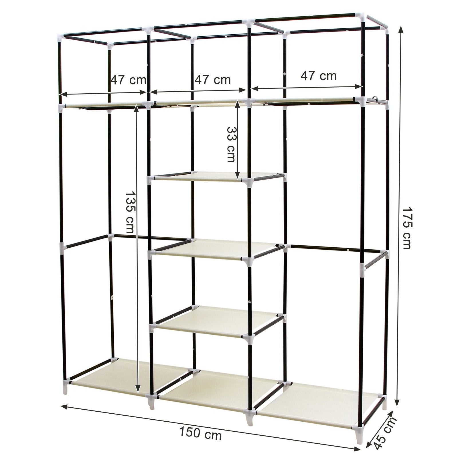 ["BRING ON THE NEXT SHOPPING TRIP! Hang your newly bought clothes neatly on the 2 clothes rails and place your favorite bags on the shelves. Everything within easy reach in this wardrobe - selecting an outfit in the morning will be fun again","A STURDY SHELF: Each clothes rail can hold up to 33 lbs; each fabric shelf made of high-quality non-woven fabric is supported by Ø 16 mm metal tubes and can bear up to 11 lbs; this fabric wardrobe combines strength and durability","DON'T LET DUST STAND A CHANCE: Your favorite clothes need better protection! Don't worry, SONGMICS is here to help! Equipped with a zipper and Velcro closures, the fabric cover of this clothes rack provides good protection for your clothes","ASSEMBLY? A BREEZE! Finally, you don't have to spend hours assembling a simple wardrobe anymore. All you have to do is insert the pipes into the plastic connectors, no tools required! Then you can showcase your new shirts and dresses on the clothes rail","WHAT YOU GET: A wardrobe made of non-woven fabric, equipped with hanging rods and shelves, and an optimal way to eliminate clothes chaos even in small apartments"]