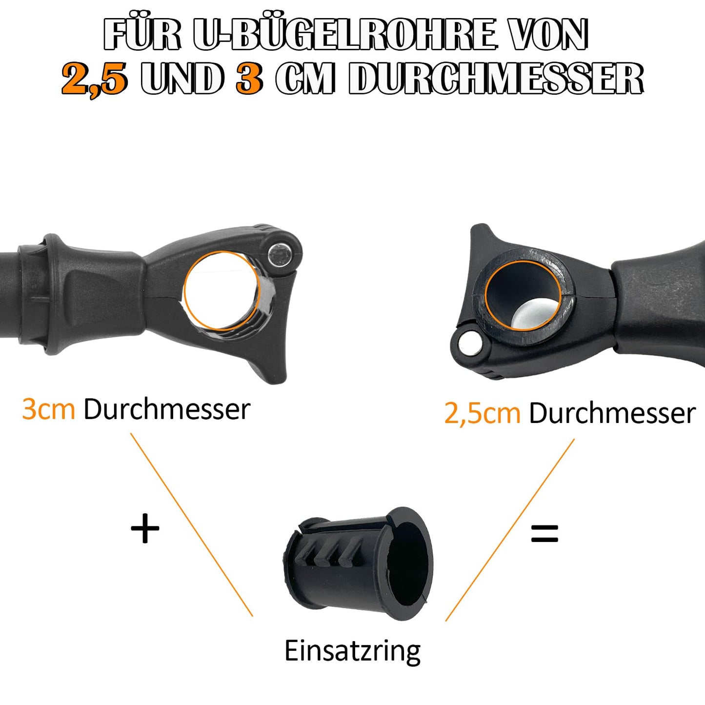 Sorlpv frame holder for bike carrier 45cm length, universal short bike frame holder lockable, frame holder for U-bar tube: Ø 2.5-3cm, for bike frame diameter: Ø 3-6cm.