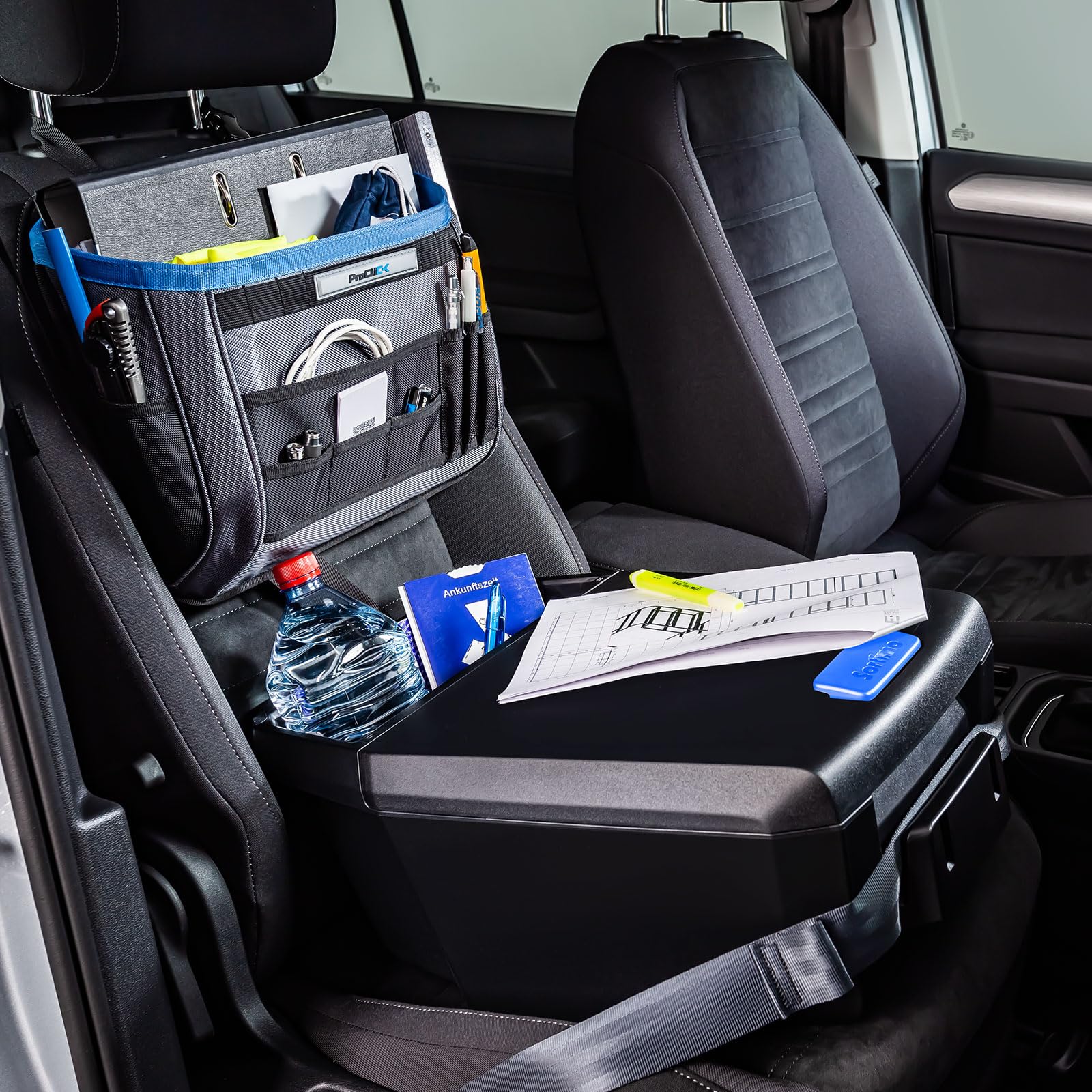 ["Set of Car Assistant and Office Organizer","Optimal organizing solution for office supplies in the vehicle","Storage options for folders and documents up to letter size","quick and easy attachment to the passenger seat","also usable in the back area"]