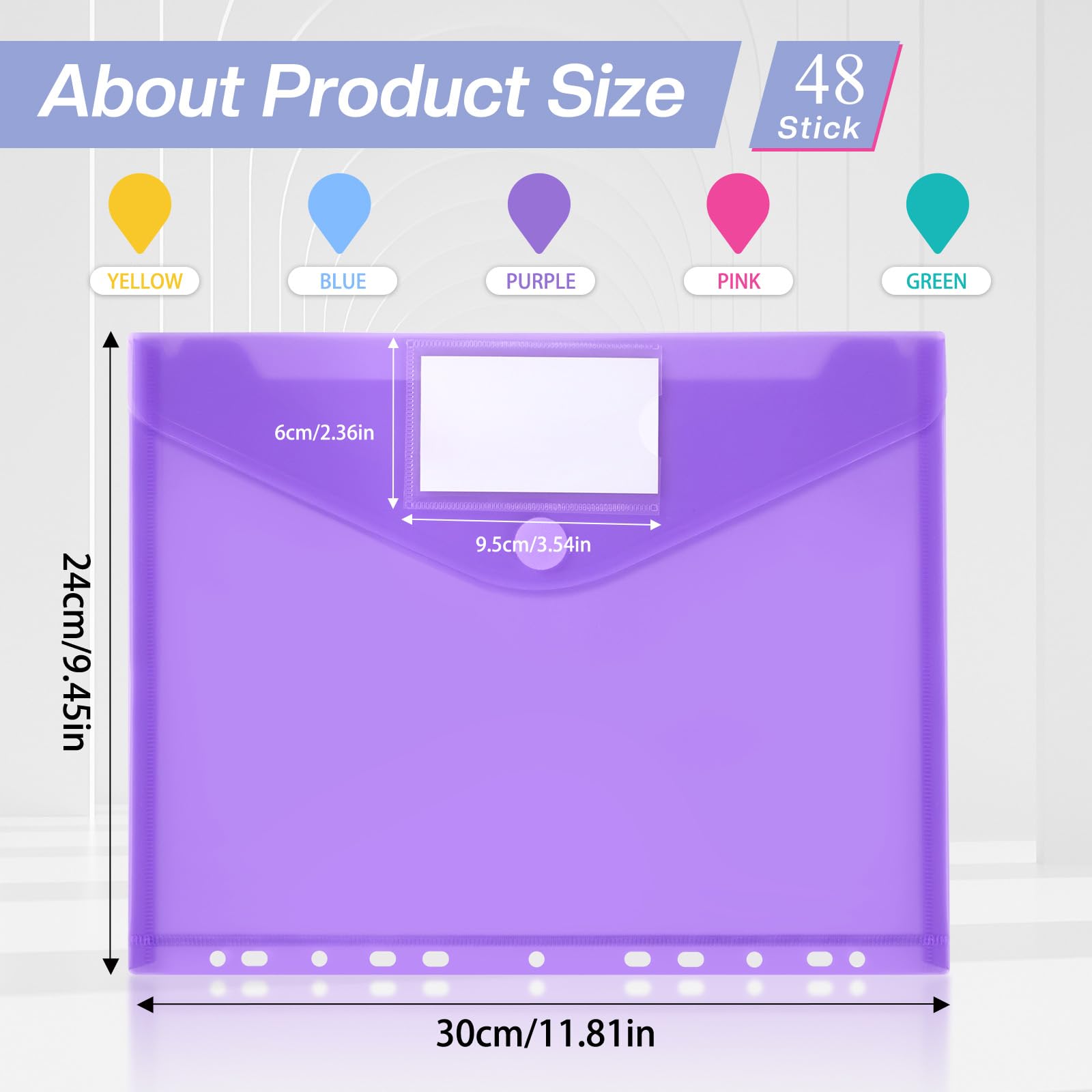 Sosayet A4 Document Bag - 48 Pack A4 Document Folder with 11 hole edge velcro closure and label pocket - Waterproof collecting folders for organizing documents (6 colors)