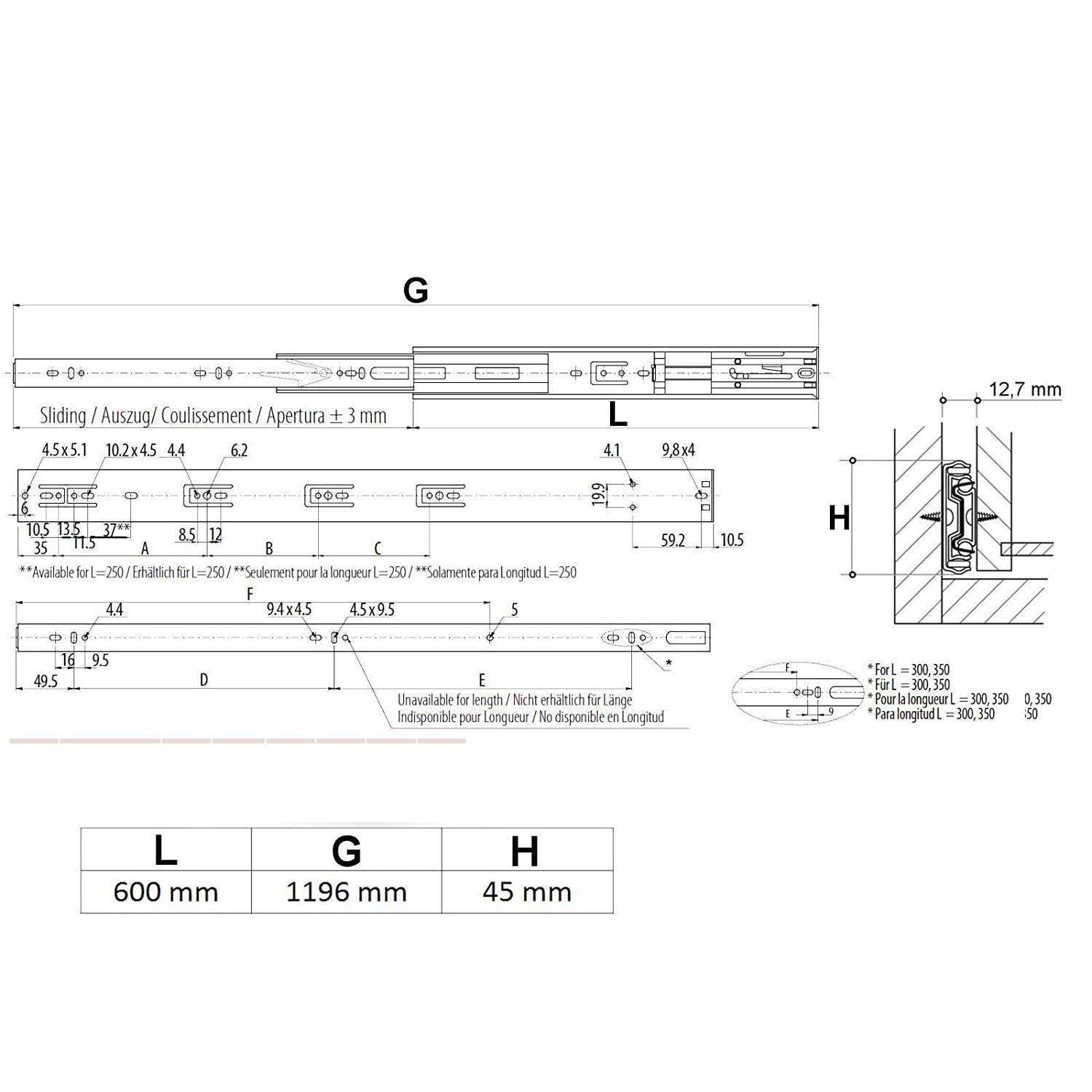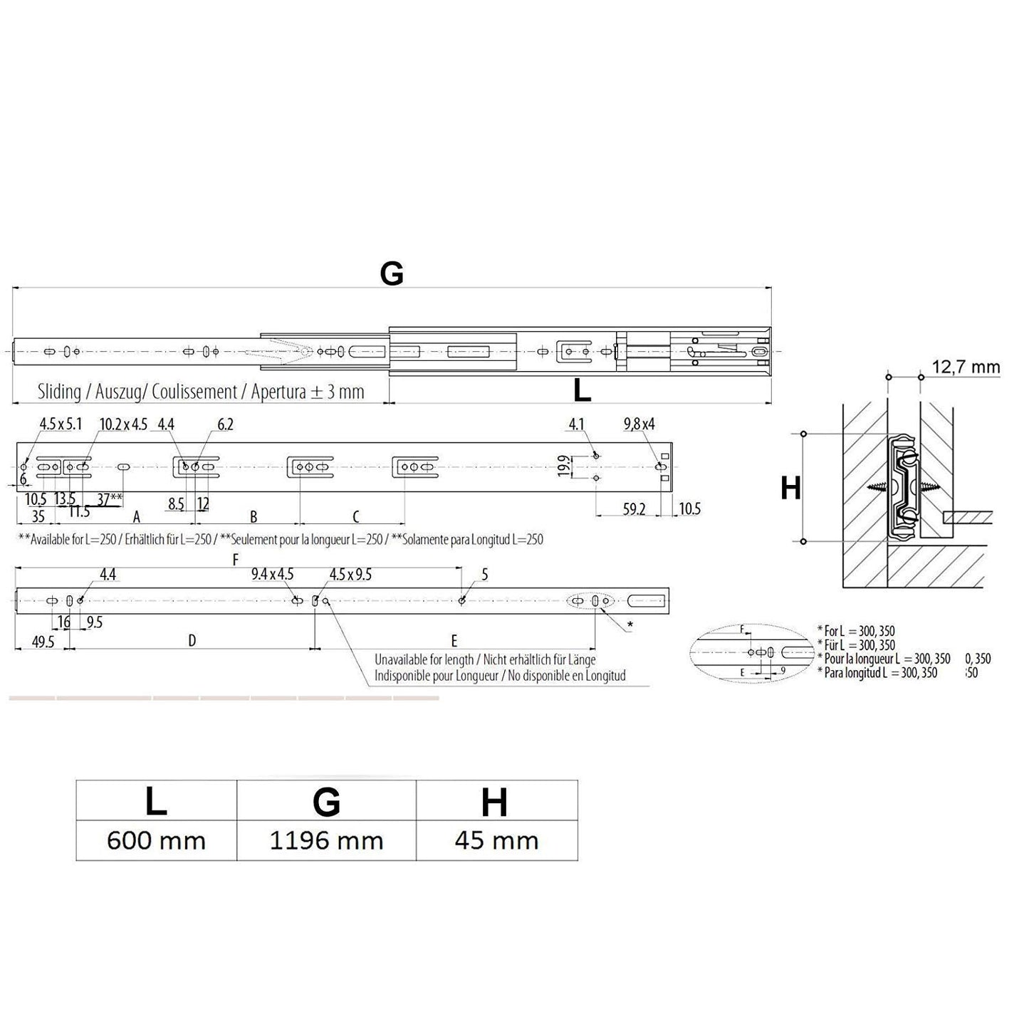 ["SO-TECH SD Rails - Quality product with SoftClosing - Self-closing & damping","Length: retracted 23.62 inches / extended 47.09 inches","Height: 1.77 inches / Width: 0.5 inches","Load capacity per pair: up to 99.21 lbs - depending on width & depth of the drawer","Price is for 2 pairs (4 pieces)!"]