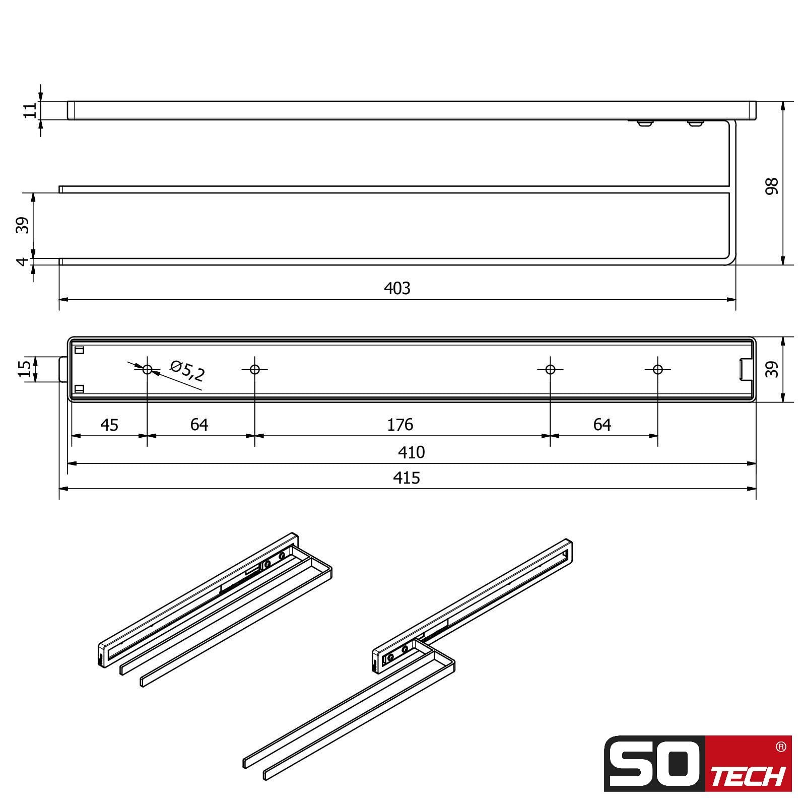 SOTECH towel pull-out Style 2-armed black 415 mm extension length 300 mm towel holder for side mounting on washbasin in bathroom and kitchen.