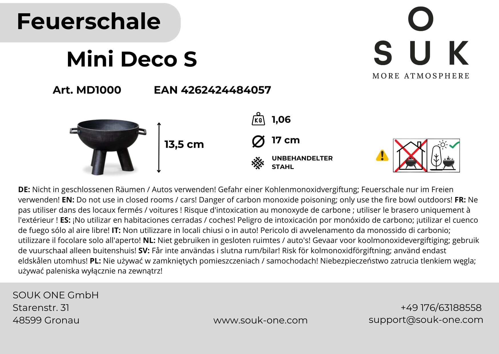 SOUK ONE Mini Decorative Fire Bowl Table Fire Table Fire Bowl (Ø 17cm)