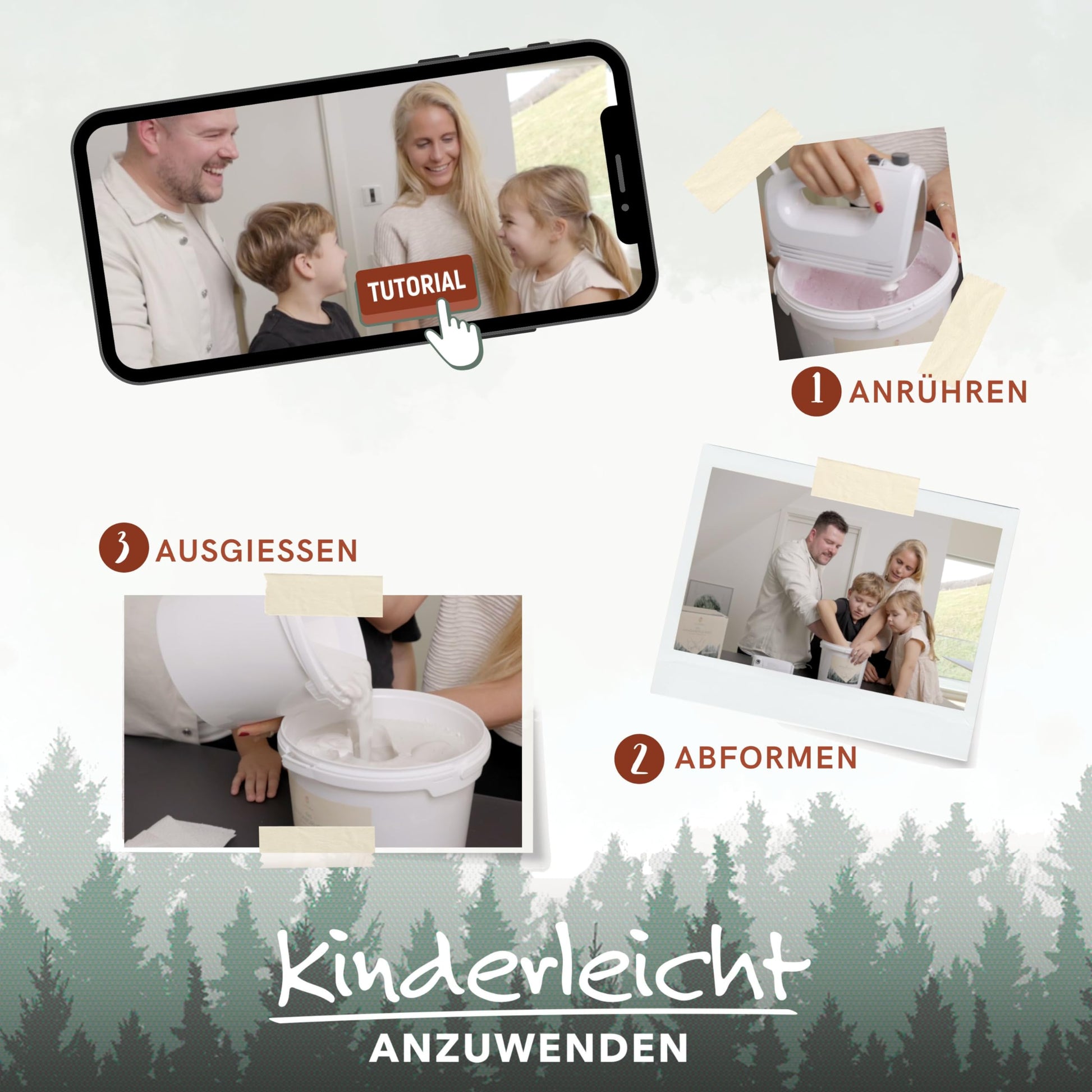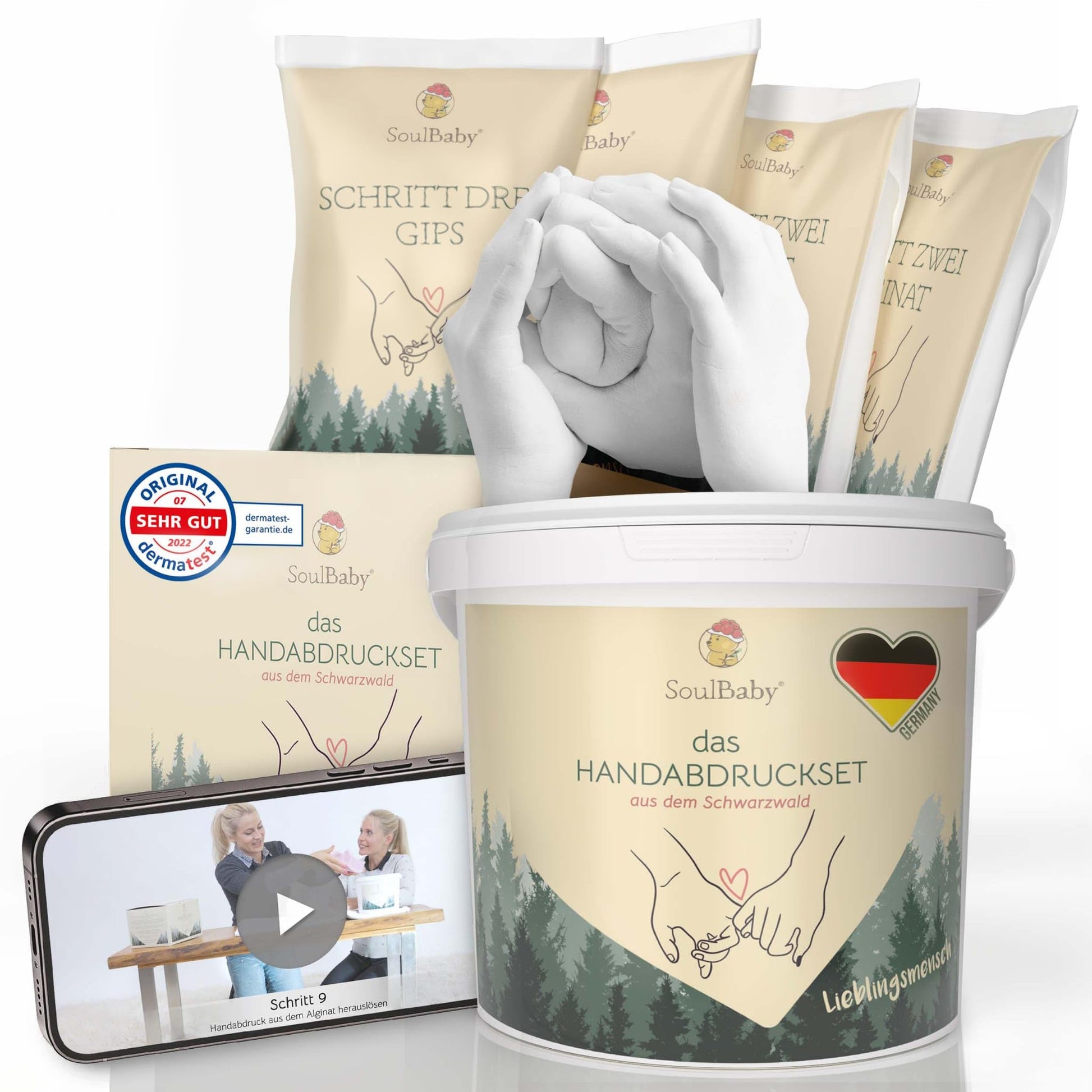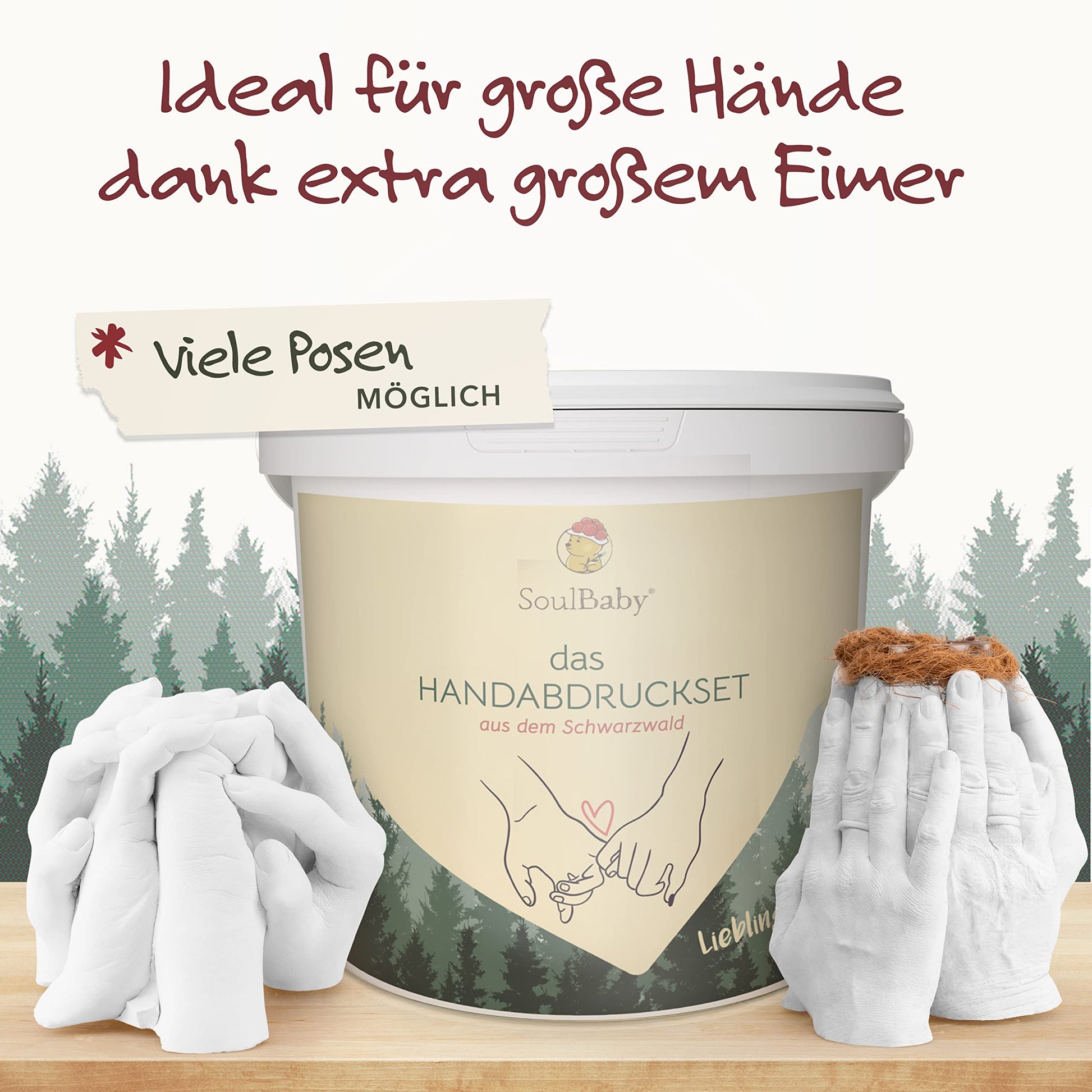 [""]"✔ PREMIUM COMPLETE SET - With the high-quality All in One Set from the Black Forest, you have everything you need for a detailed family handprint & shared moments of happiness! "✔ EXTRA LARGE FOR 4-5 HANDS - Thanks to the extra-large bucket, the 3D family imprint set is perfect for 4 large hands & provides enough space for the first-class plaster cast in your favorite pose! "✔ EASY & SAFE - The crystal-clear step-by-step instructions & additional video tutorial always ensure easy & safe success. "✔ INCLUDES GIFT PACKAGING - Thanks to the elegant packaging with a personal sticker, you always give the gift of great family time & memories with this high-quality family plaster cast set. "✔ SOULBABY PROMISE - First-class materials & craftsmanship from the Black Forest make the family plaster cast set a beautiful family experience - 100% satisfaction or money back!"