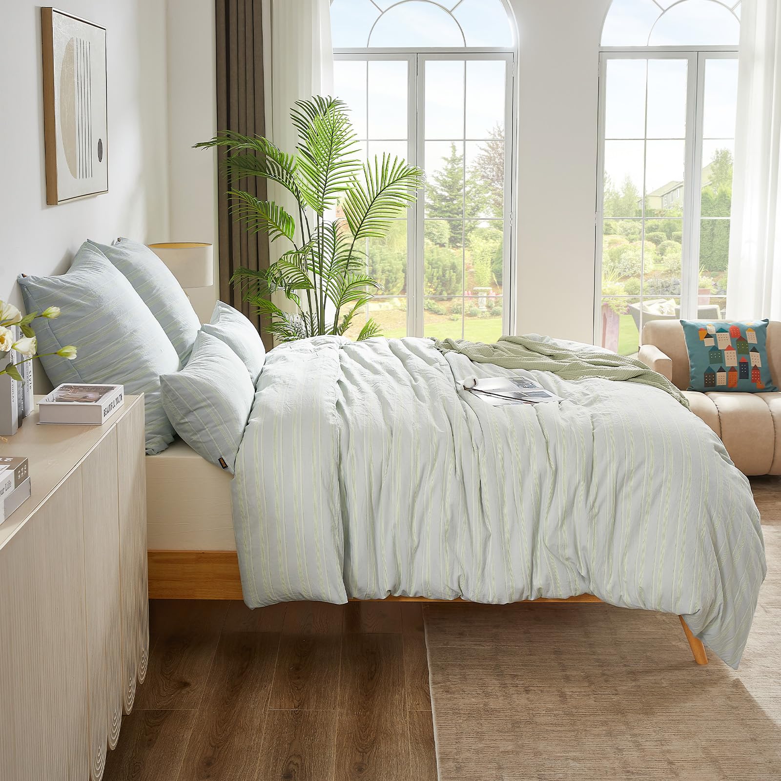 SOULFUL bedding set 135x200 made of striped cotton, 100% washed cotton, light green color, ÖKOTEX certified. Includes 1 duvet cover 135x200 and 1 pillowcase 80x80.