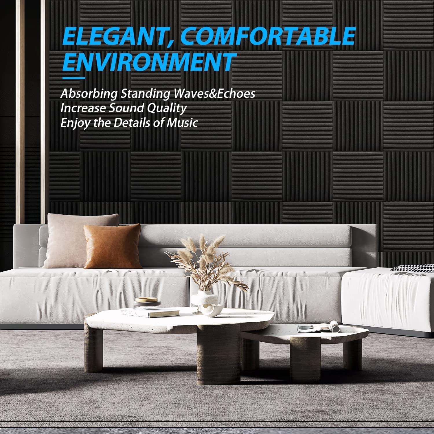 ["π POWERFUL ACOUSTIC PROCESSING OPTIONS --- Kuchoow Acoustic Foam is specially designed for the acoustical treatment of walls, doors, and ceilings. The dense porous structure allows it to absorb and largely reduce echoes and noises. This ensures that even in a home studio, the sounds of instruments or vocals can be recorded clearly and distinctly, allowing you to mix your music at a higher level.","π SAFE and HIGH-QUALITY MATERIALS --- Made from environmentally friendly polyurethane that does not harm our body. Additionally, the foam contains a flame-retardant formula to reduce the risk of sudden danger and ensure safety with good product performance.","π WIDE RANGE of APPLICATION SCENARIOS --- Kuchoow acoustic foam can reduce the vibration and reverberation of indoor noise, allowing for better playback and recording effects. They are great for home studios, home theaters, decoration, music rooms, game rooms, classrooms, and offices.","π LONG LIFESPAN --- Uniform density and thickness. Kuchoow Acoustic Foam is not easily deformed or aged, and the sound absorption effect is not affected after cutting. It is safe and reliable and can be used over a long period of time.","π QUALITY GUARANTEE --- All products sold through Kuchoow come with a one-year quality guarantee and continuous customer service. If you have any problems or dissatisfaction, please do not hesitate to contact us, we will respond within 24 hours."]