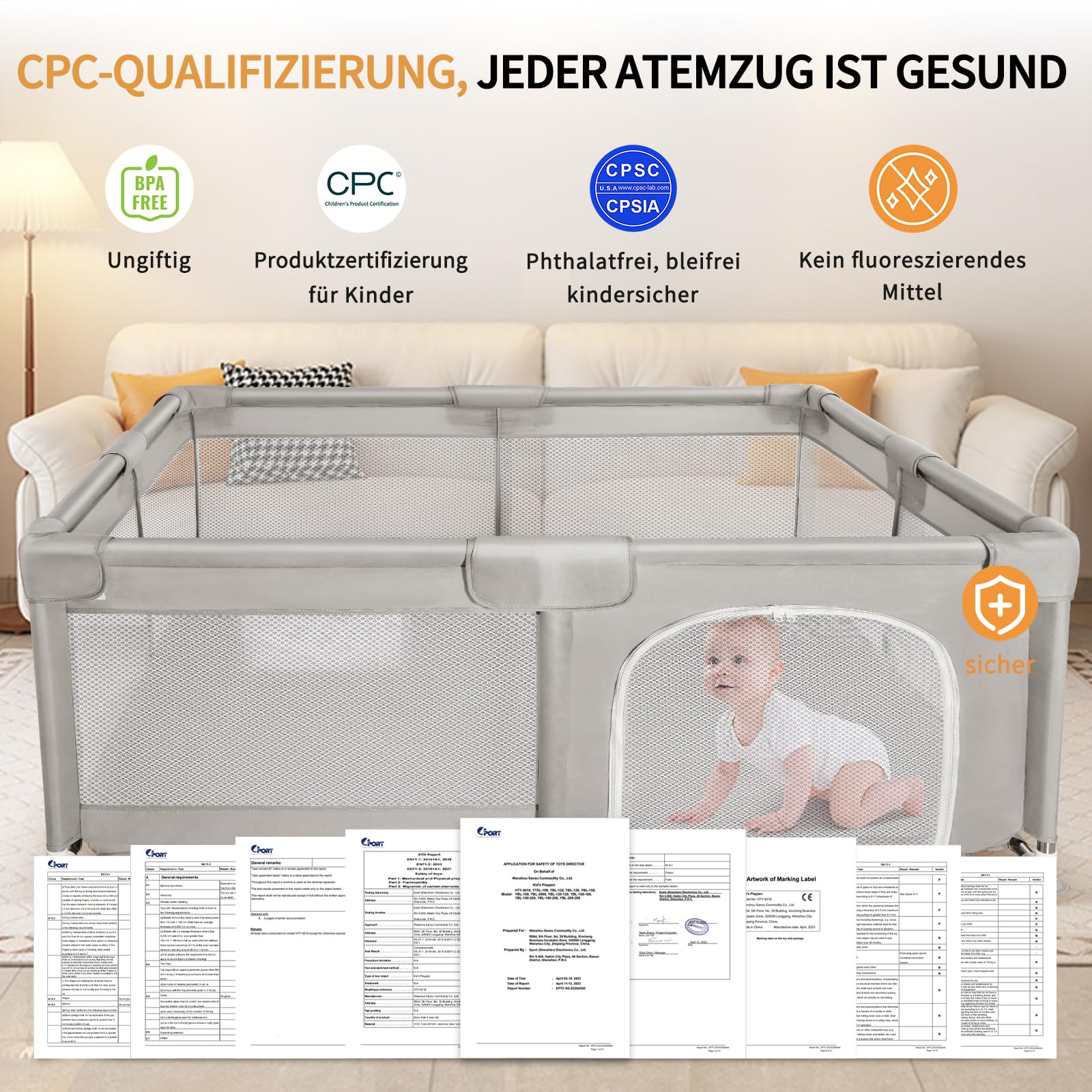 "A sufficiently large baby fence: A 59 x 71 x 26 inch large baby fence is a spacious play area that can comfortably accommodate activities for multiple children/teens and parents. The height of the baby fence is about 26 inches, and the scientific height helps your child stand and walk. The sturdy mesh design protects their safety. Large baby pen, suitable for playing with toys, friends, and pets."