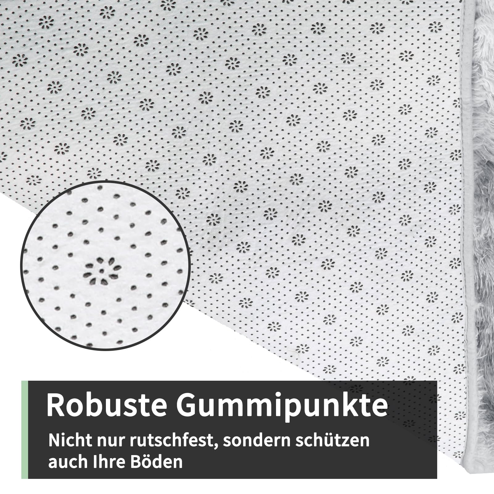 ["【Super Soft Feel】- The large living room carpet is made of fiber material, super soft feel and velvet can absorb dust. The middle sponge with high load-bearing capacity can reduce the pressure on your feet and improve softness. You can freely lie on it to relax or play games with your family.","【Non-slip Bottom Design】- The bottom of the bedroom soft carpet is covered with thousands of plastic bead points, they can help increase the friction between the carpet and the floor, and give the carpet a certain non-slip function. Grips floor, non-slip and does not harm the floor. Keep the carpet in place.","【Suitable Size】- 160 x 230 cm large fluffy high pile carpet, the fur carpet is about 5 cm high, soft long hair surface and 10mm thick sponge intermediate layer, not easy to shed, not easy to be contaminated by dust, no odor, not easy to fade.","【Washable Carpet】- Simply vacuum daily with a handheld vacuum cleaner. If you want to clean more deeply, you can add some mild detergent and gently wash the shaggy area rugs with your hands. Then choose a well-ventilated location, lay the carpet out or hang it up to dry. Please do not expose it to the sun.","【Multipurpose】- This shaggy area rug is richly colored and is an ideal choice for home decoration. It is a perfect home decor for living room, bedroom, kids room, girls room, boys room. Also suitable for college dorm, a baby crawling room, yoga mat, etc. This modern indoor carpet provides your family with a place to relax after a busy day." ]