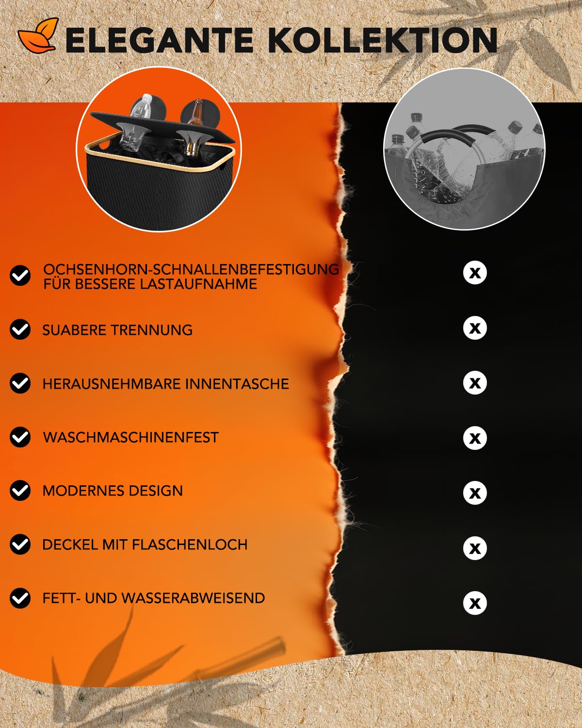 HIGH-QUALITY MATERIALS AND EASY CLEANING: Our storage box is made of durable fabric that is easy to wipe clean and protects against splashes and dirt. Thanks to its water-resistant properties, the box remains clean and appealing. The included black fabric bags can also be cleaned when needed.