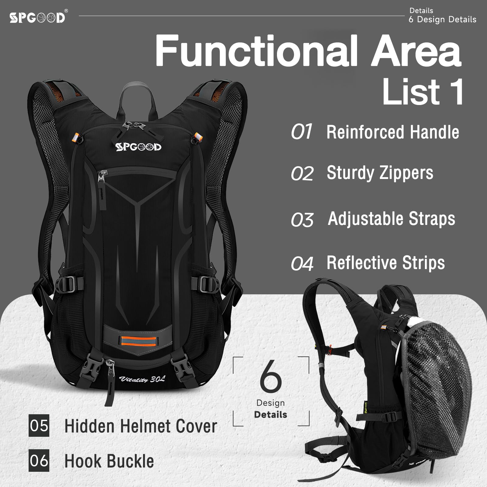 SPGOOD Bike Backpack 20L/25L/30L (9 colors) - Waterproof Ultralight - for Women & Men Multifunctional - with Rain Cover/Helmet Cover Backpacks MTB Mountain Bike (Black, 25L)