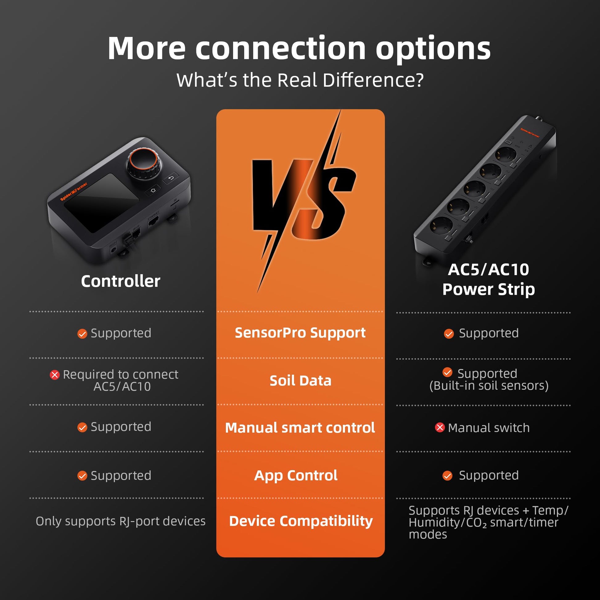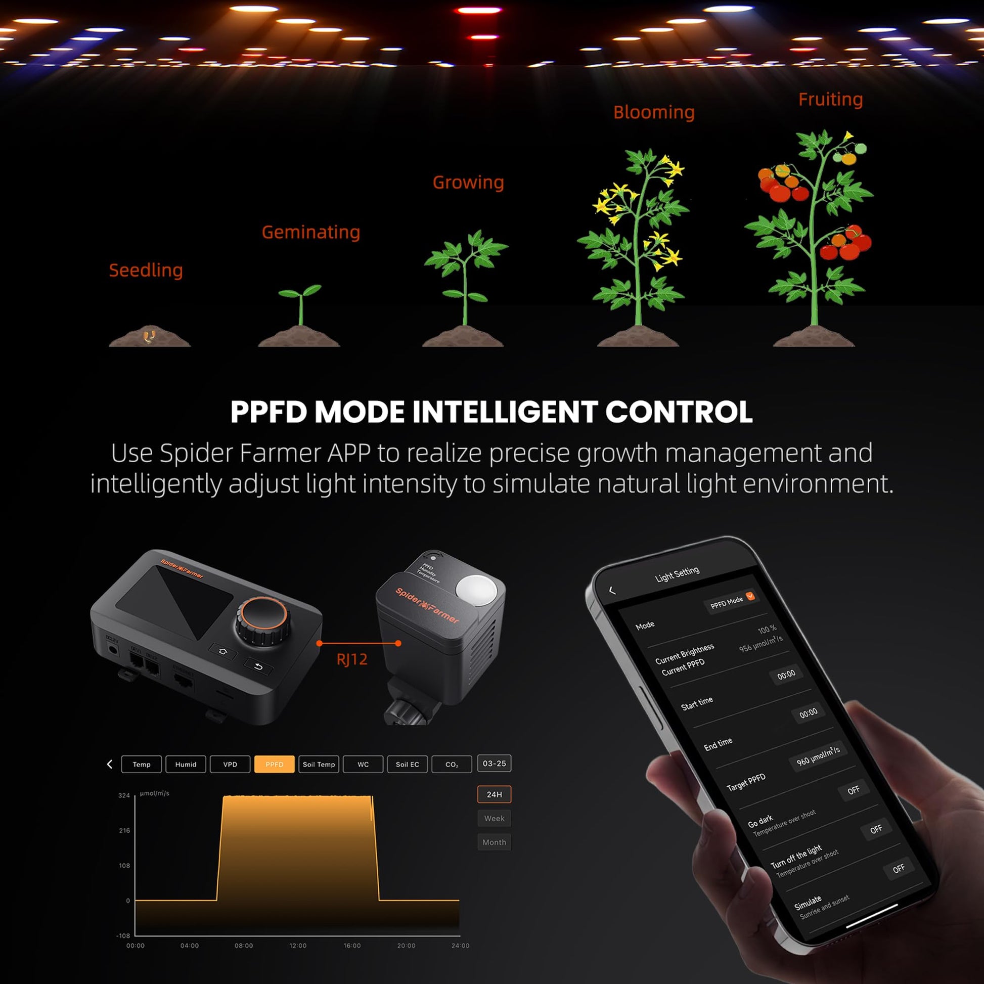 "4-in-1 Sensors: The SF Sensor Pro integrates four important measurements (temperature, humidity, PPFD, VPD) into one single device. It monitors multiple critical parameters in real-time in the growth environment and helps the user optimize the microclimate for better plant growth. Note: When using SensorPro, make sure to disconnect the original temperature and humidity sensor from the controller or outlet to ensure only one sensor is providing measurements.