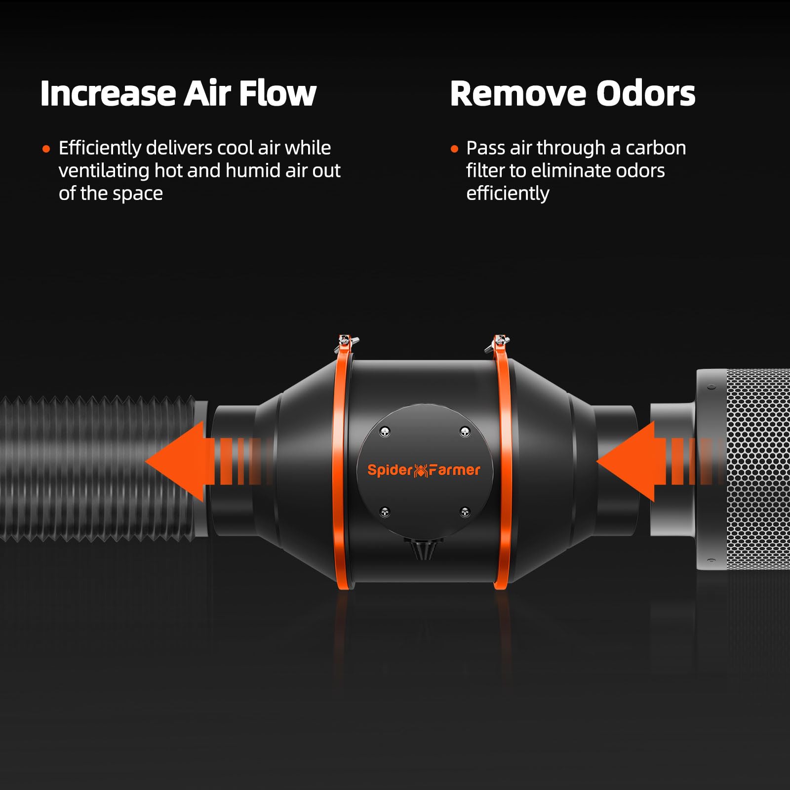 "Effective Ventilation System: Quiet and powerful 4-inch inline fan and RC412 Australian carbon filter and flexible aluminum duct combination; very easy to install and use; ensures strong airflow and good air circulation, eliminates all unwanted odors; you will only smell fresh air. Also great for humidity control",