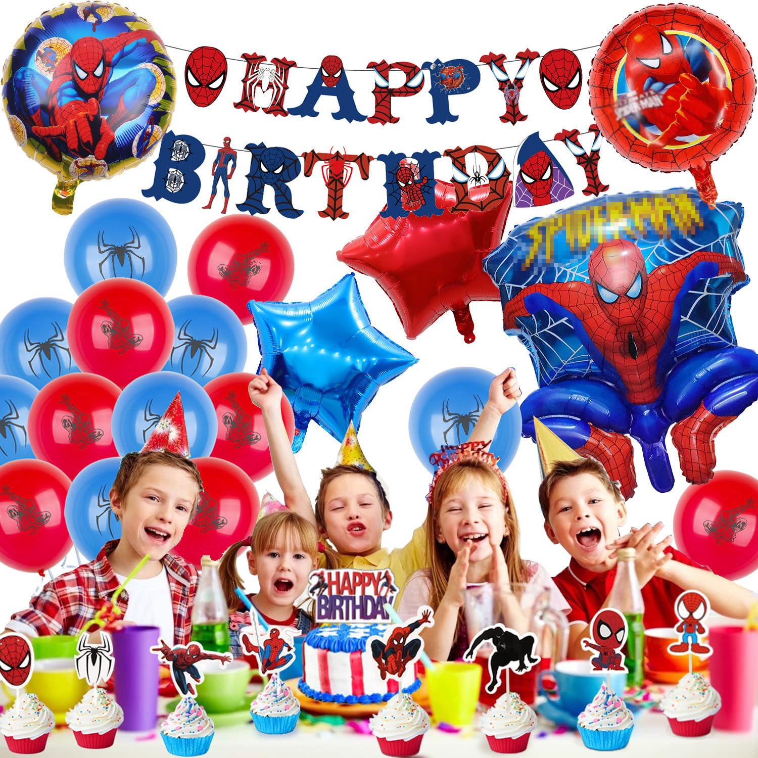 "You will receive a birthday decoration including a Happy-Birthday banner, a Happy-Birthday sticker, 12 stickers from the series, a balloon with 5 numbers, 2 pentagram balloons, 5 round red balloons, 5 round blue balloons, 2 round balloons, and 1 large balloon. Spiders are lovely comic characters that boys love and are obsessed with, and you can use them to decorate various parties.