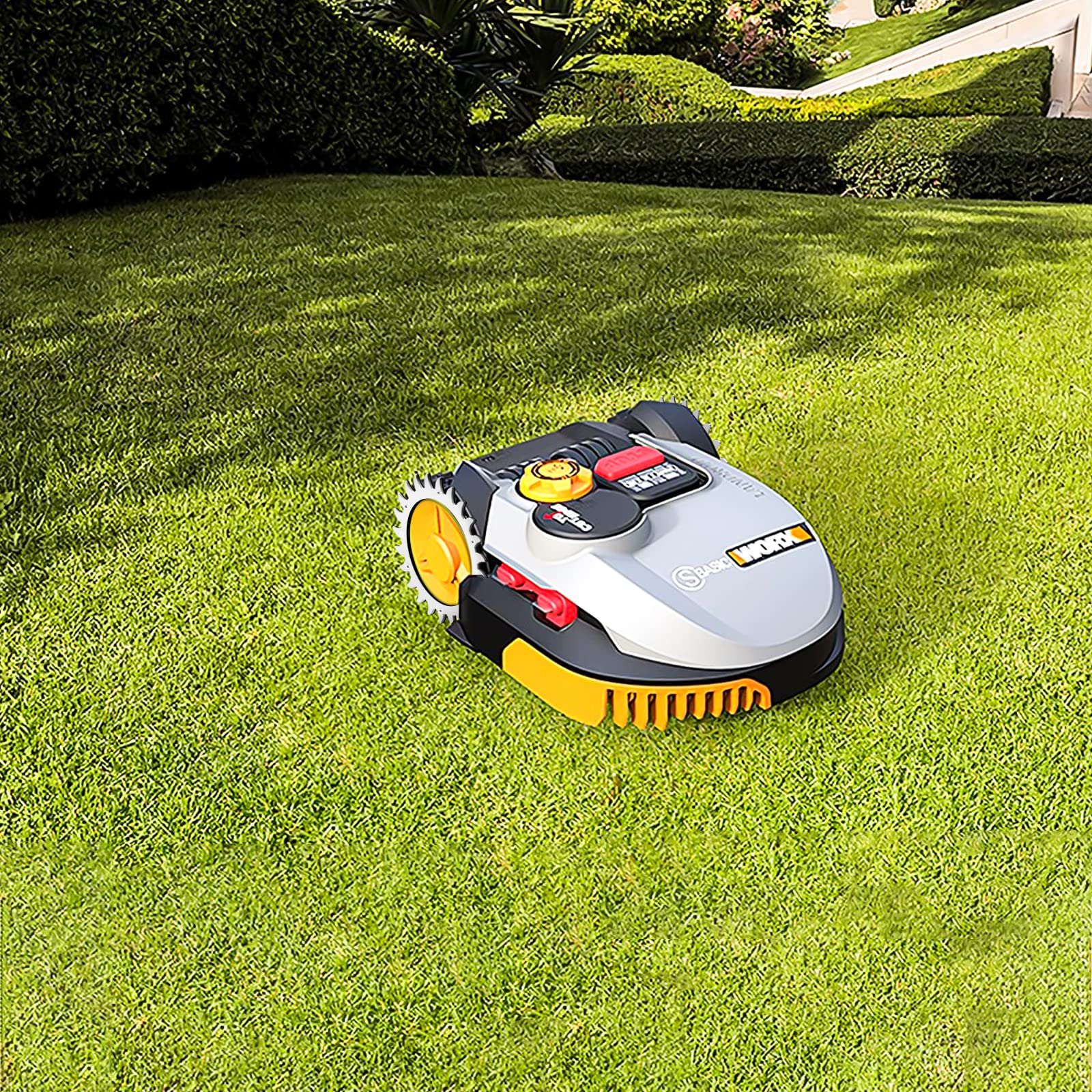 ["100 % Traction: When the lawn is wet or the property has numerous slopes and inclines, the spikes give the mower better traction, no more digging in the lawn. With our M Robot spikes for Worx Landroid, you prevent your lawn robot from digging out and leaving marks in the lawn.","Premium Material: Our spikes are made of 100% stainless steel. A material advantage is that the spikes are rust-free and therefore durable. The dimensions are 205 mm x 2.0 mm. Additionally, 12 stainless steel screws are included.","Easy to Install & Beautiful and Healthy Lawn: Simply center the spikes on the wheels and attach with the included screws. The high-quality spikes ensure a beautiful lawn. No more holes in the lawn as you drive your Landroid Worx lawn mower robot.","High Compatibility: With a wheel size of 205 mm, the spikes can be used for all S and M models of the Landroid mower. S300 [WR130E]; M500 [WR141E]; M700 [WR142E]; M1000 [WR143E]; S450i [WR101SI]; S450i [WR102SI]; S500i [WR105SI]; S450i [WR106SI]; S700i [WR101SI]; M800i [WR111MI]; M800i [WG757E]; M900 [WG758E]; M1000i [WG796E.1]; M1200i ID B [WR113MI]; M500 2.0 [WR165E];","Good Service: If you have any questions about our product, please contact us immediately and we will solve it right away. Your best shopping experience is our goal"]