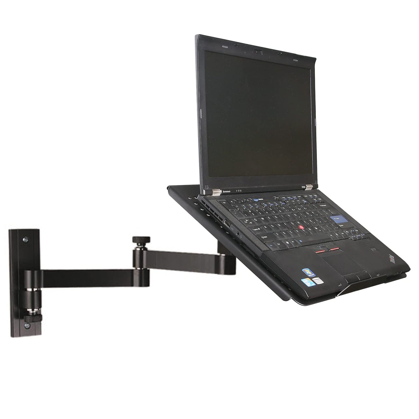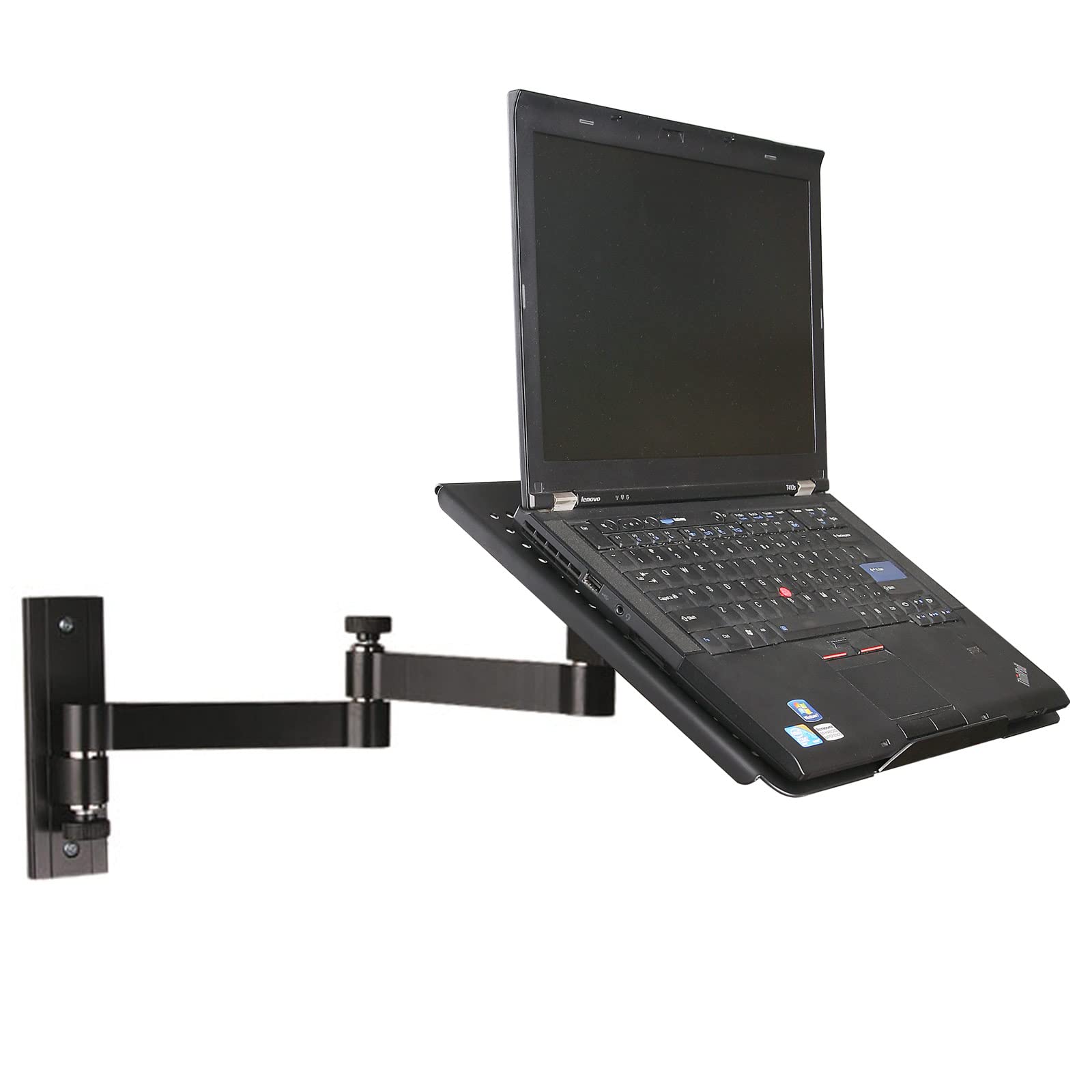 Individually adjustable - the laptop mount can be swiveled 180° degrees in a semicircle and tilted up to 140° degrees. You can extend the wall mount up to 39 cm. Your laptop can be fixed in any position using the thumbscrews of the mount.
