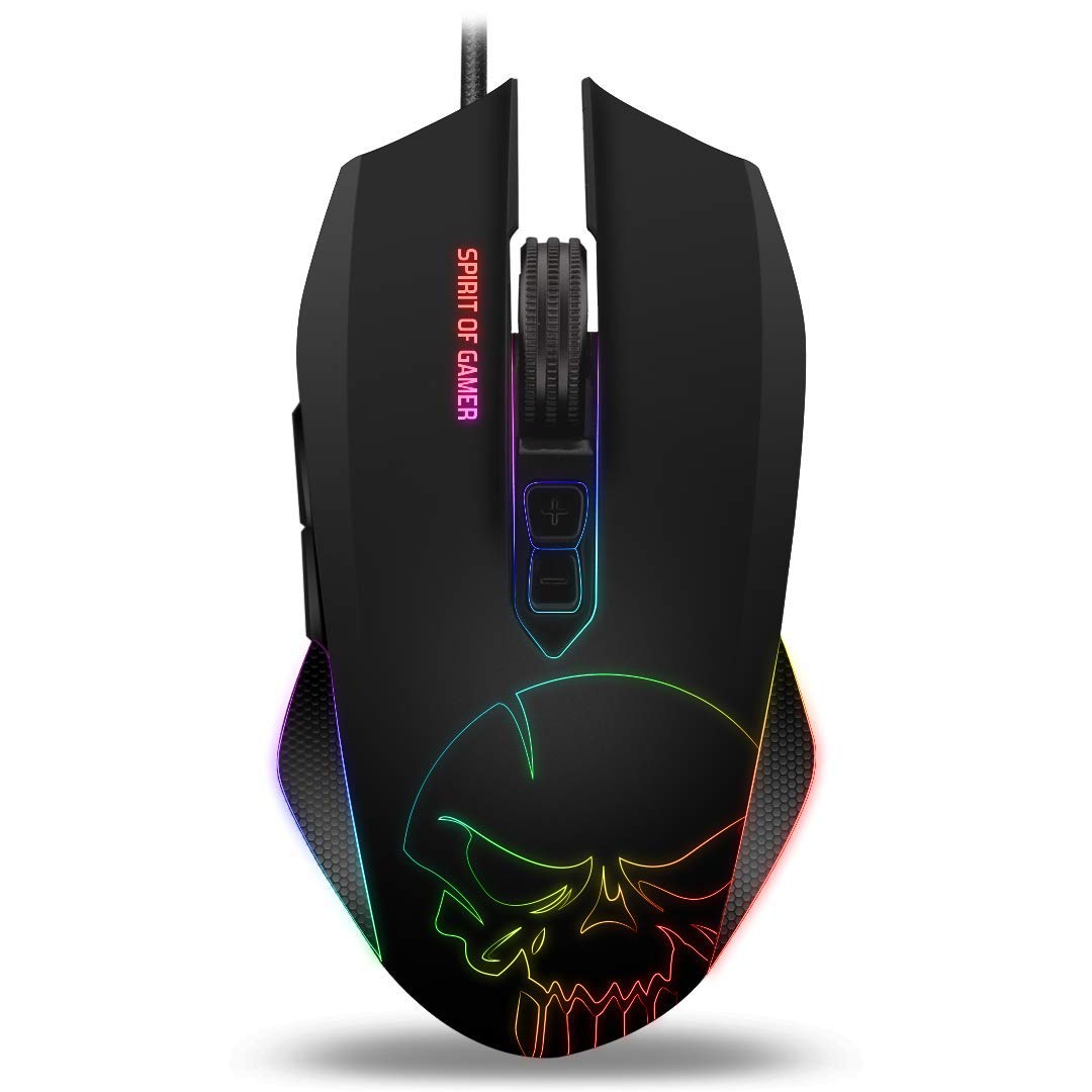 "The new wired RGB Spirit of Gamer Elite-M40 mouse combines superior performance with a comfortable grip. Enjoy an optical 4000 dpi sensor, non-slip metal gliders, ergonomic design, and Skull backlighting.