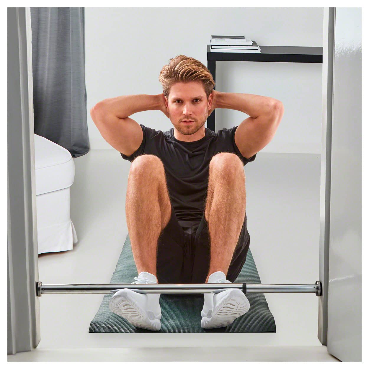 TENANT-FRIENDLY - Whether for pull-ups, sit-ups, push-ups, or even as a curtain rod or clothes rack. This pull-up bar is ideal for rental apartments."