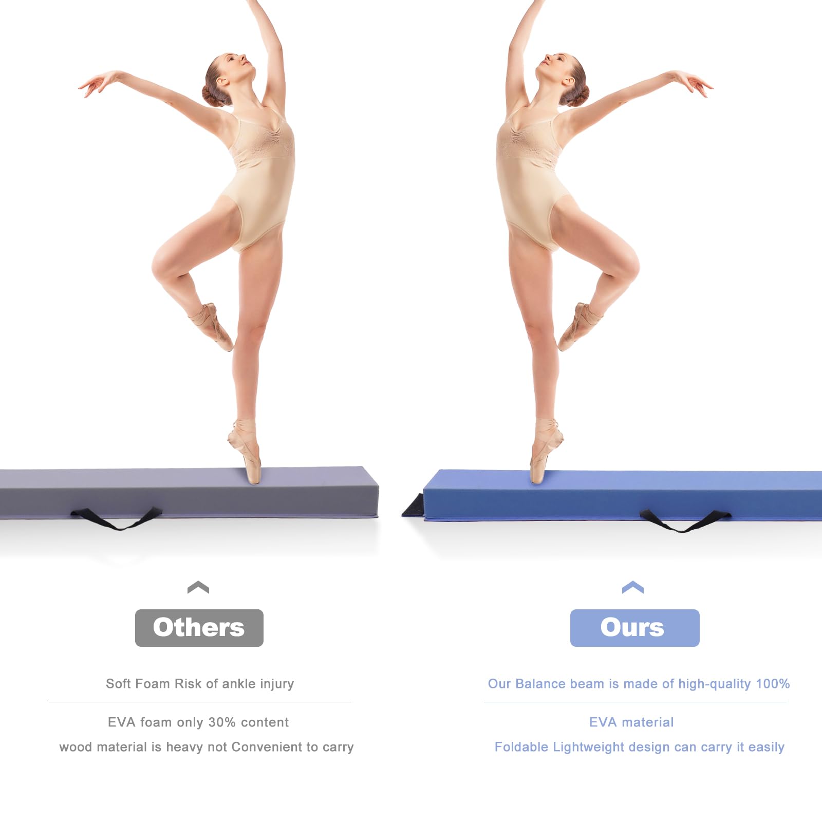 ["☢Long Pro Quality Floor Beam: PU Leather Extra long foldable balance beam with 12cm top, matching the competition beam! 15cm base holds the beam secure, preventing it from tipping over and providing safety for the gymnast.","☢Thick practice pad that won't flatten: Our padded beam is covered in PU material and has a non-slip rubber bottom for a soft, stable practice surface that won't flatten over time.","☢Lightweight and durable: Our folding beam weighs only 3kg and can be easily carried and stored in any closet and home. In addition, to achieve tear-resistant and durable, we use extremely strong double stitches, reinforcing the seams on all sides.","☢Wide application: Our balance beam is a high-quality beam for girls who want to practice movements like hand feathers, cartwheels, handstands, jumps, walkovers, and kicks. Complete your home gymnastics equipment set with the gymnastics bar to complete the set and use with a mat for added safety. This is a great home gymnastics equipment.","☢Competency development for children young gymnasts: Balance beams provide safety and reassurance for your young gymnast, making it a perfect device for kids and toddlers to develop skills at home. We stand behind our products. Customer satisfaction is what we aim for. If you have any problems, please don't hesitate to contact us."]