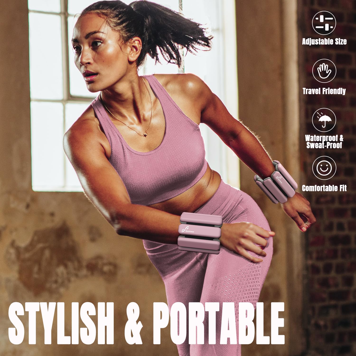 Sportneer Portable Weighted Ankle Straps - 2-pack (0.5 kg & 1 kg each) for men and women, ankle weight set for yoga, dance, aerobic, running, walking (Pink)
