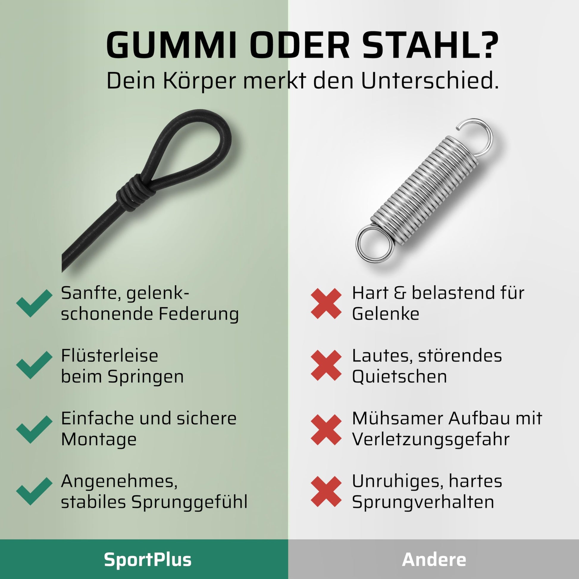 QUIET & GENTLE ✅ - The high-quality bungee cords provide a pleasantly soft jumping feeling and almost silent training. Joints are protected, and neighbors are not disturbed. Perfect for apartments where quiet, effective training matters.